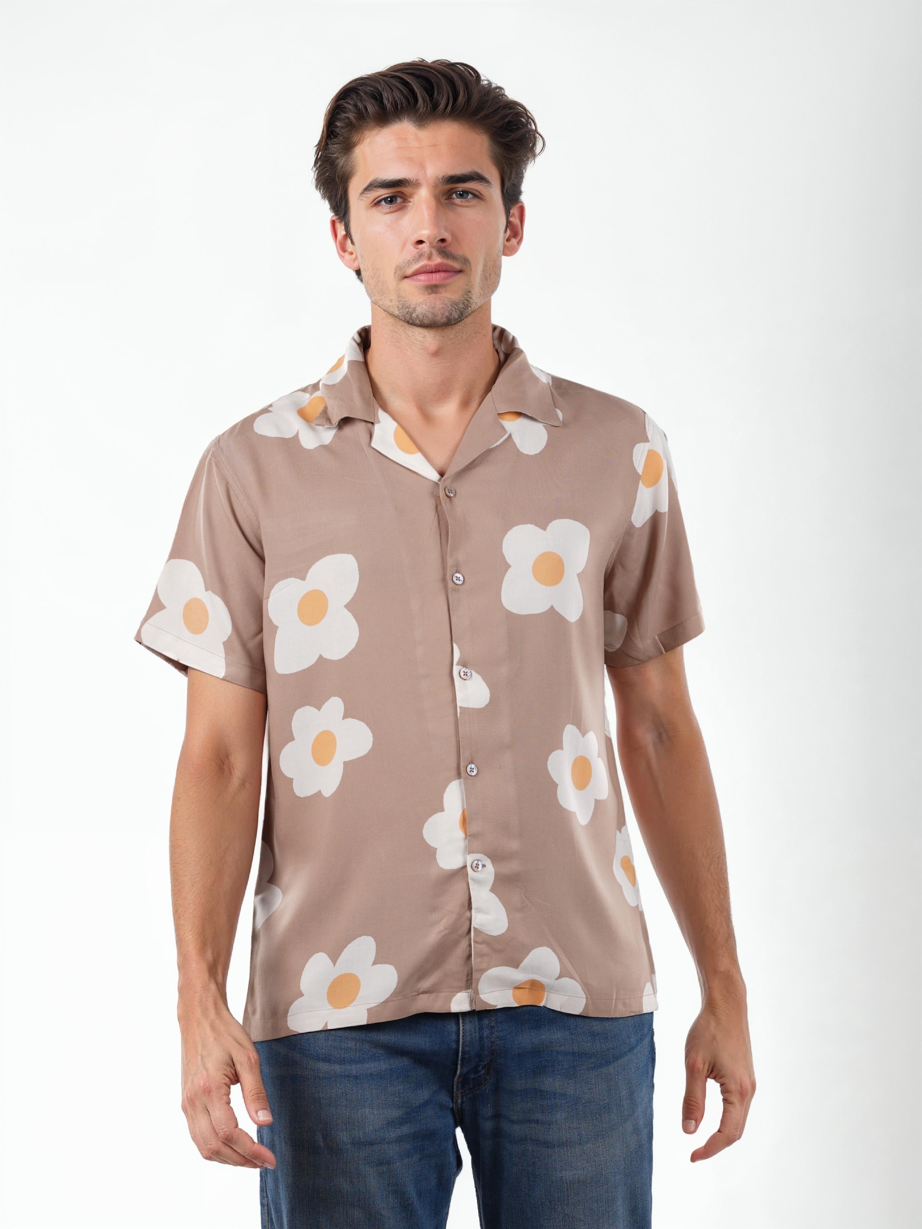 Celio* Printed Regular Fit Viscose Taupe Shirt