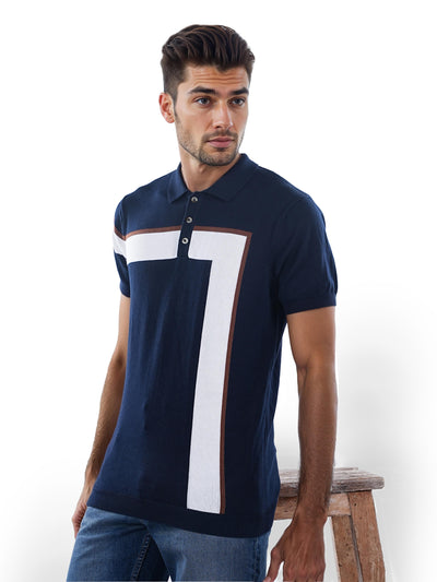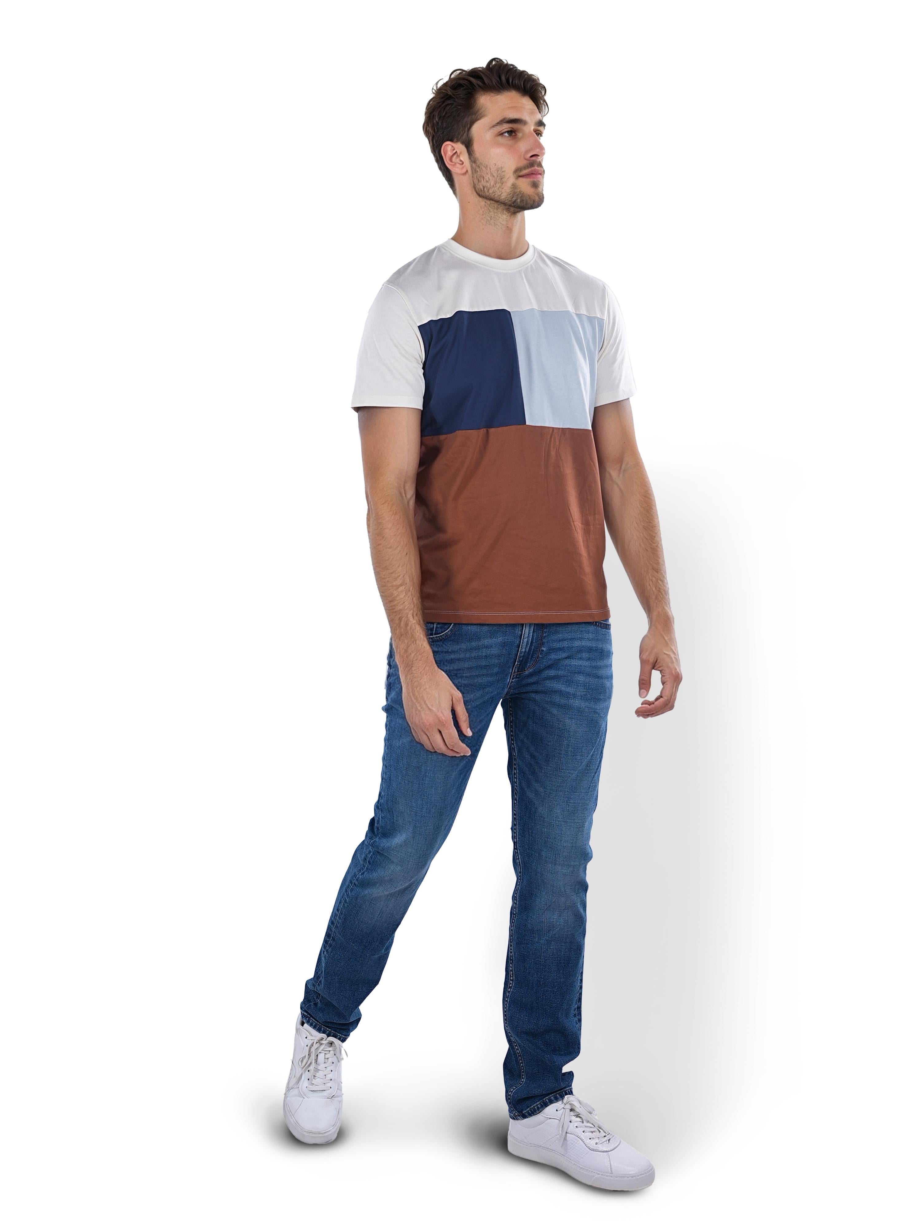 Celio* Colourblock Regular Fit Cotton Navy Blue T-Shirt