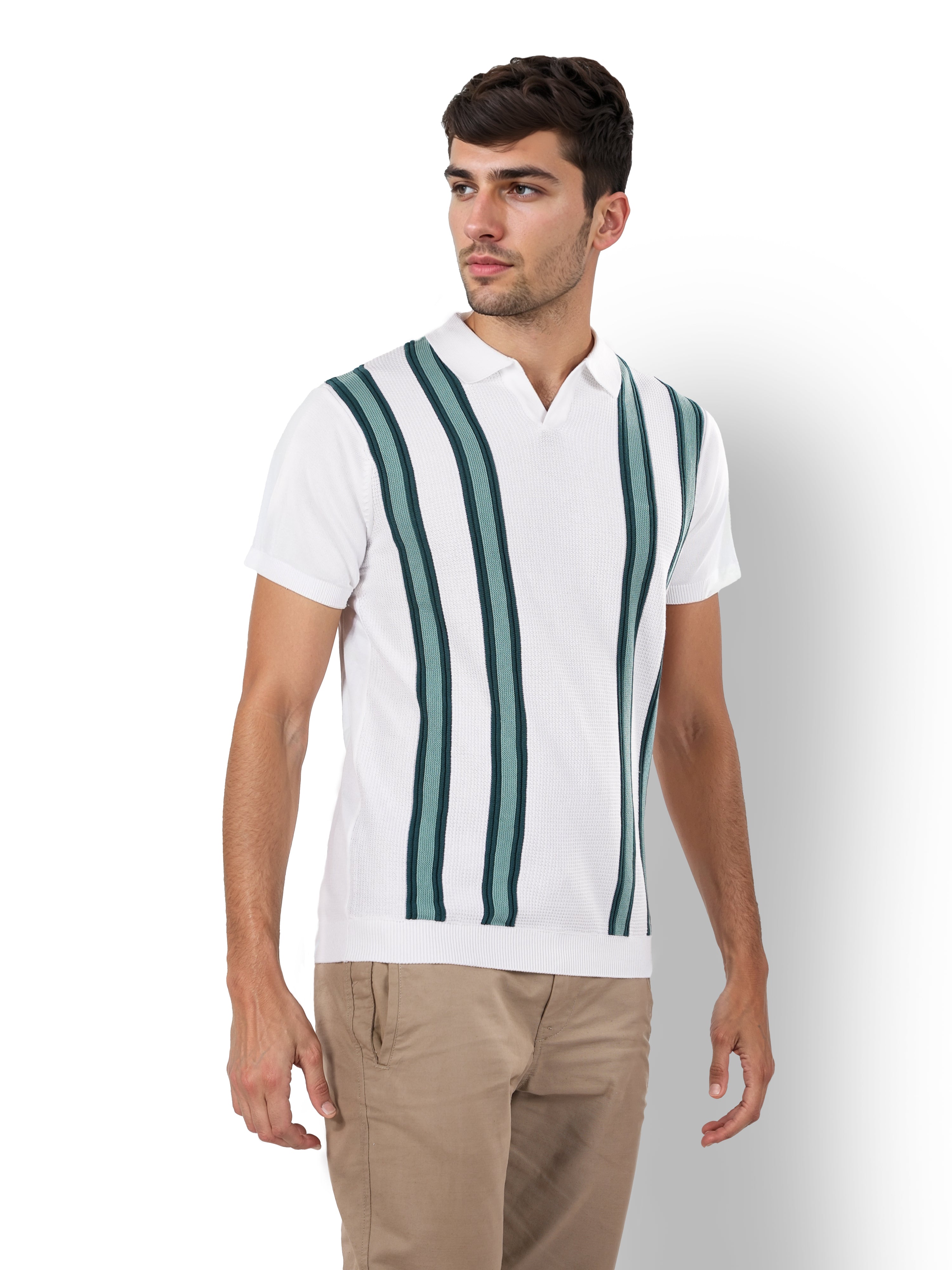 Celio* Striped Regular Fit Cotton White T-Shirt