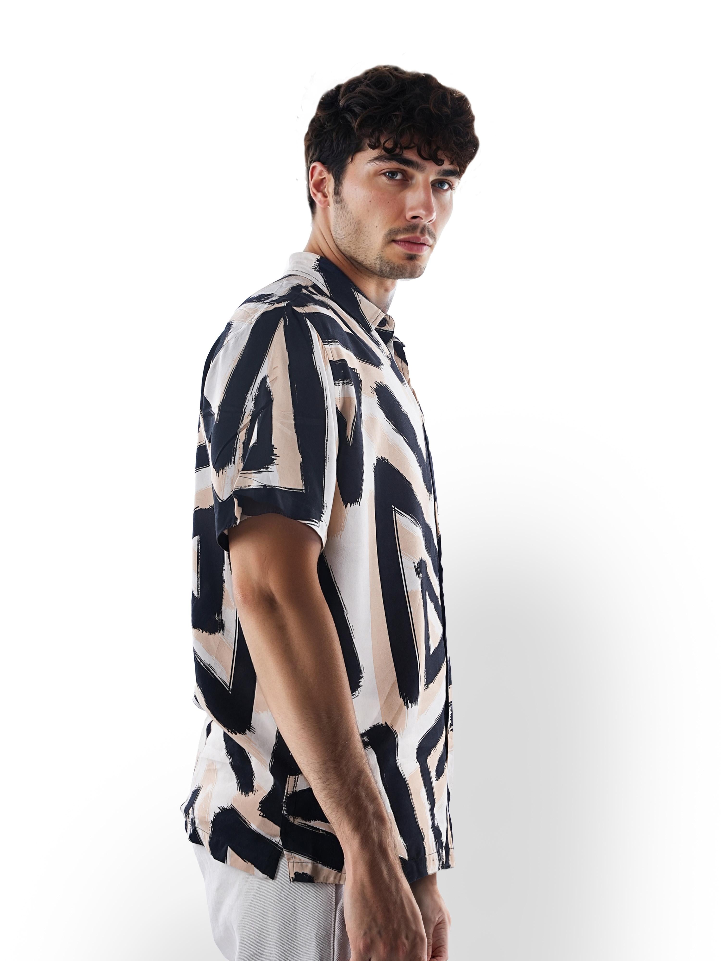 Celio* Printed Regular Fit Viscose Black Shirt