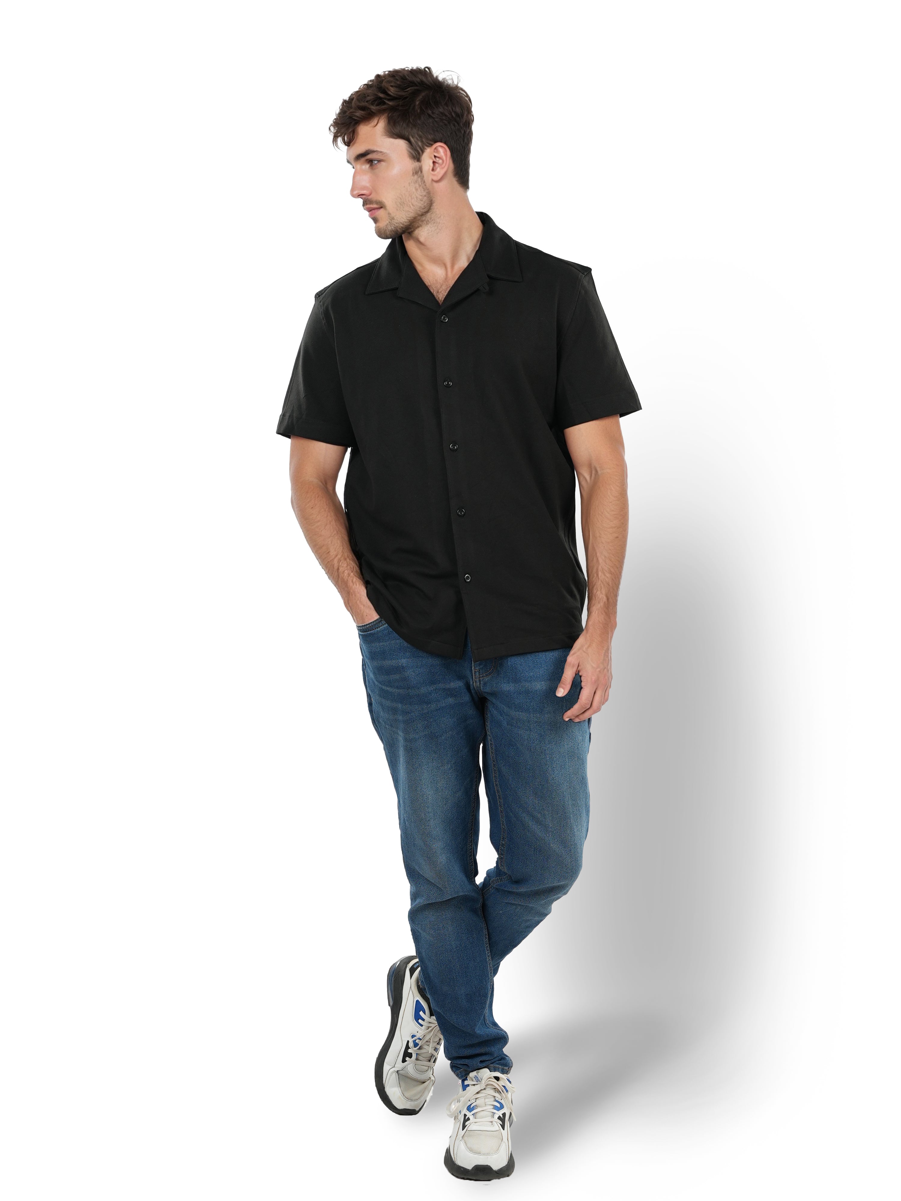 Celio* Solid Regular Fit Cotton Black Shirt