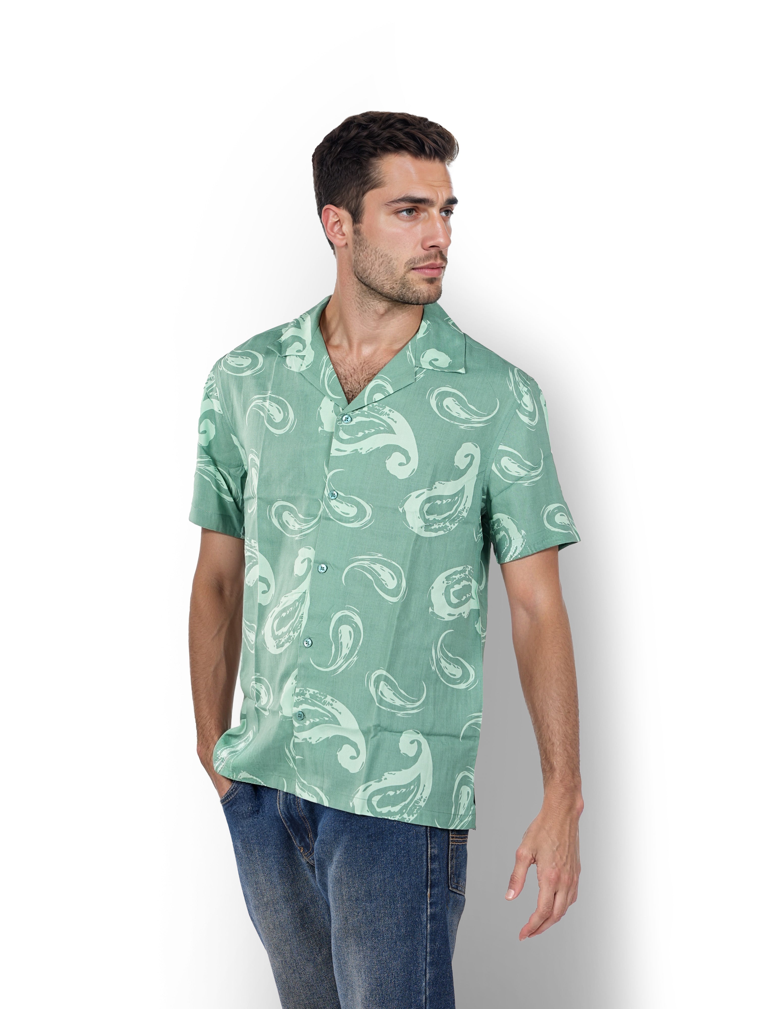 Celio* Printed Regular Fit Viscose Green Shirt