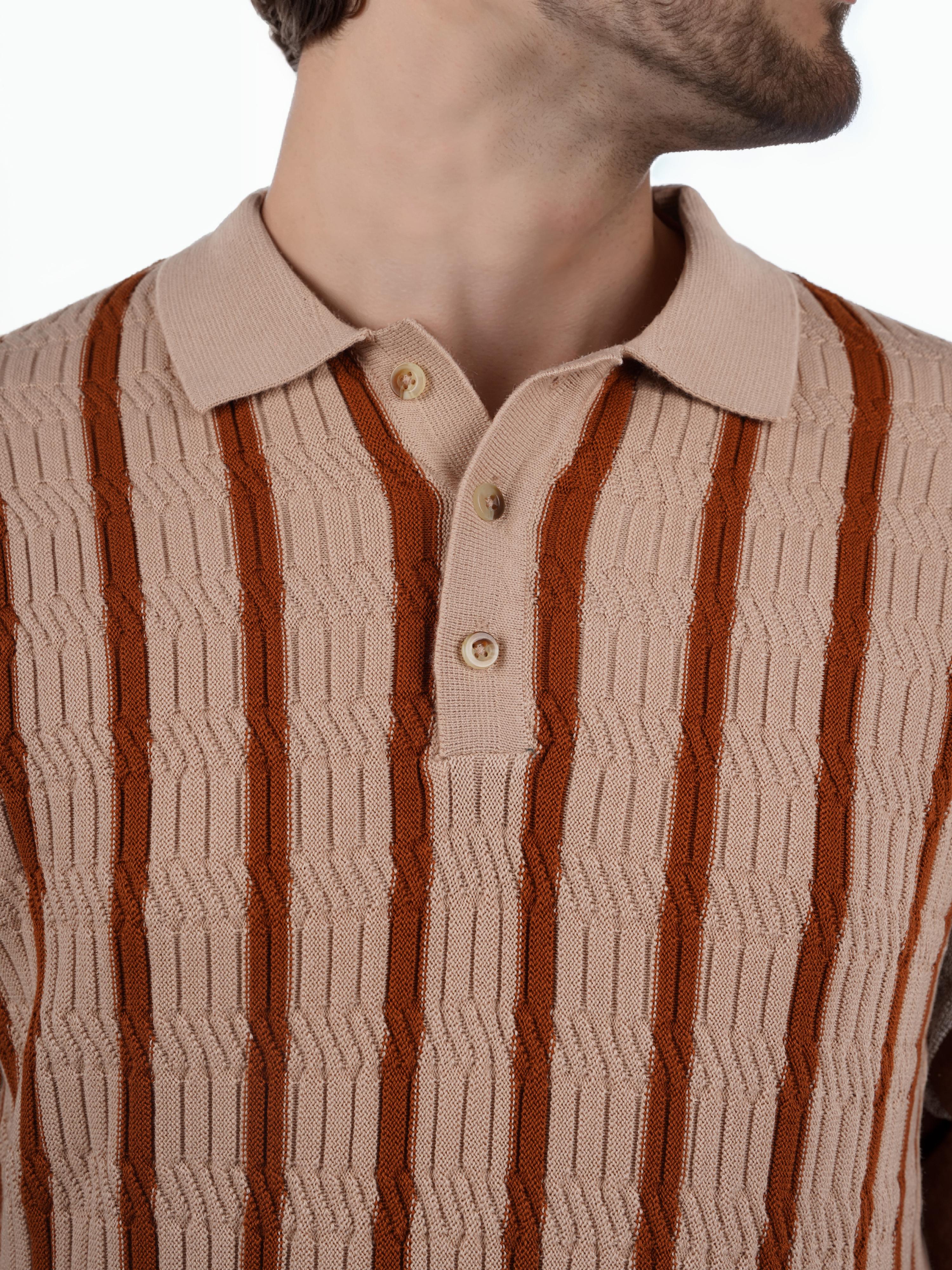 Celio* Striped Regular Fit Cotton Brown T-Shirt