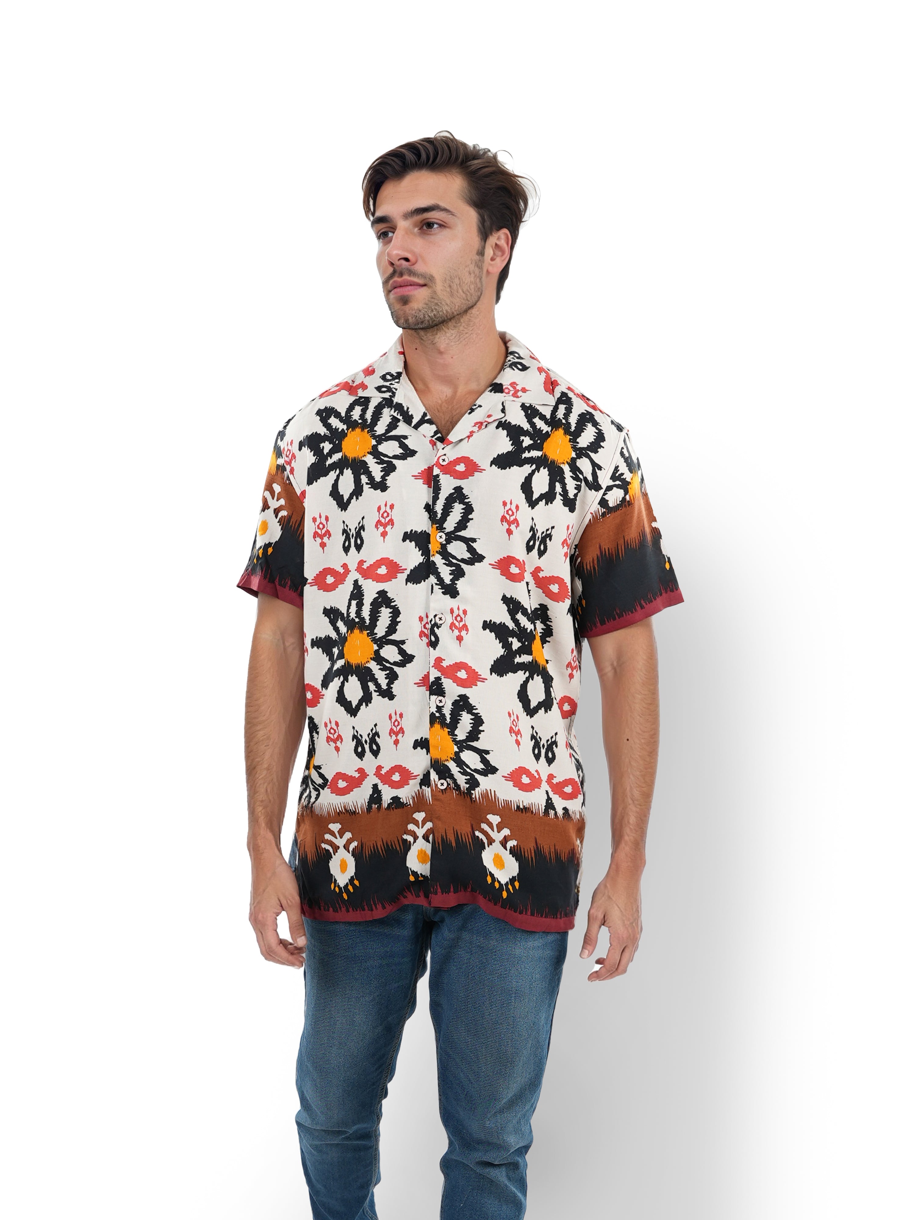 Celio* Printed Regular Fit Viscose Off White Shirt