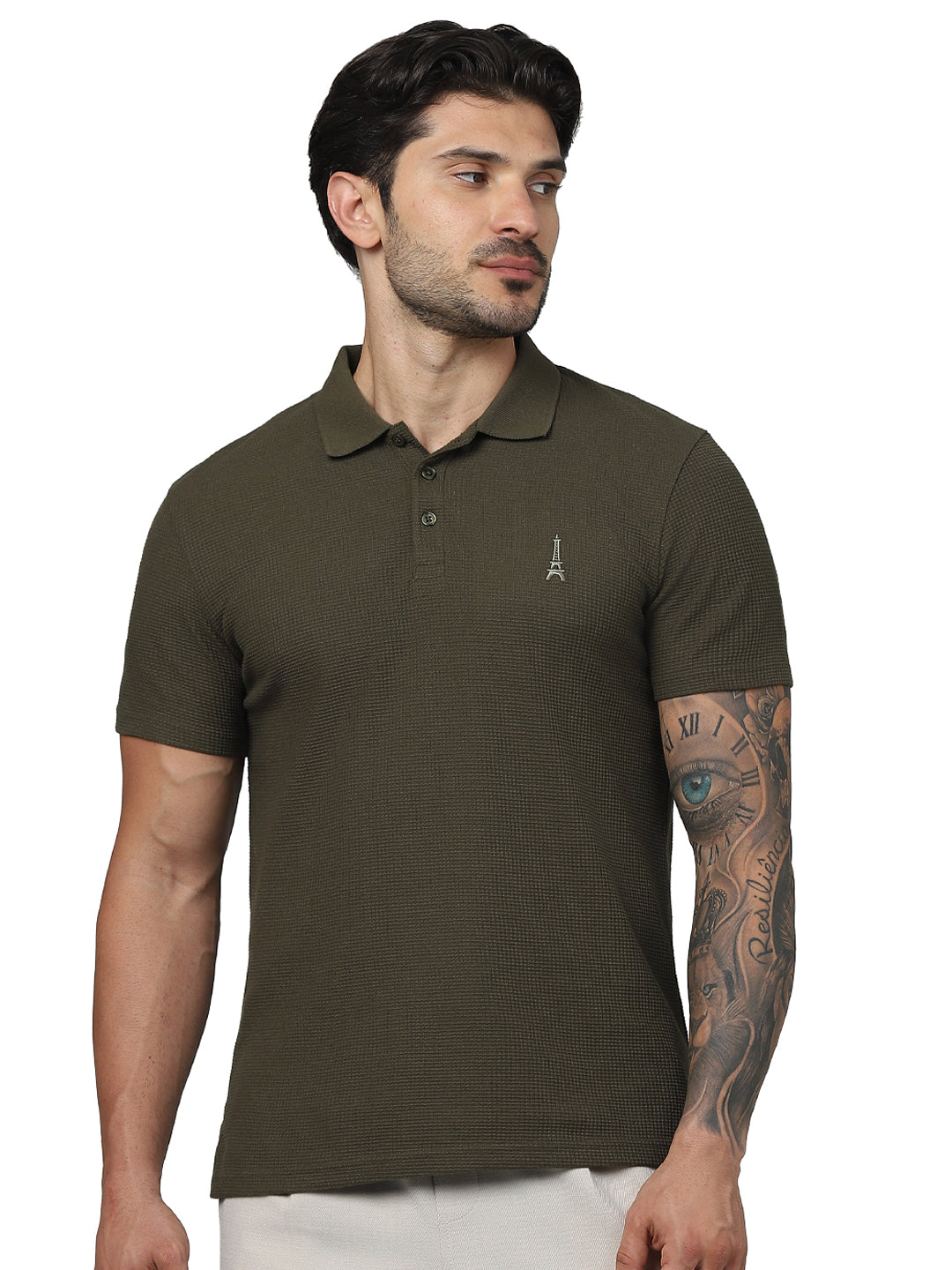 Celio* Solid Regular Fit Cotton Olive Shirt