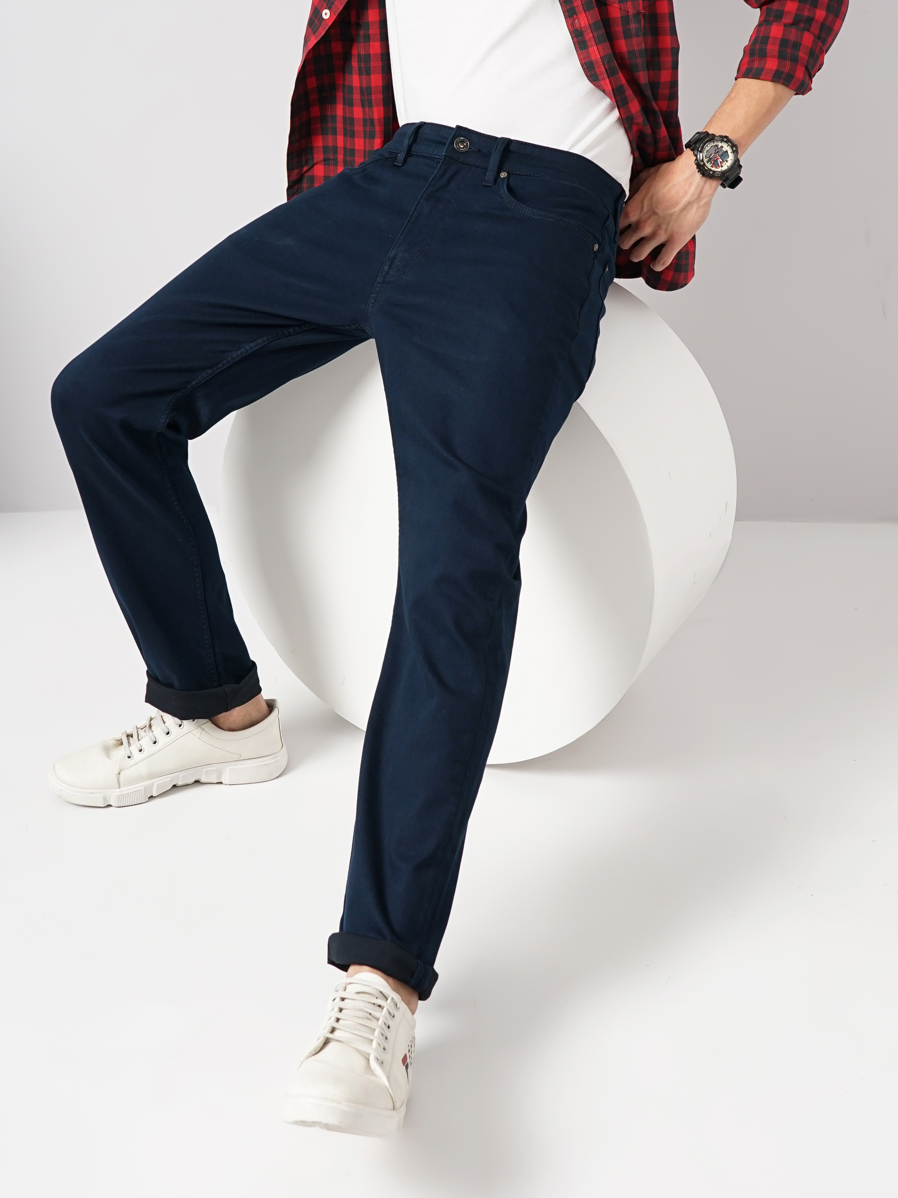 Celio* Cotton-Blend Straight Slim Fit Navy Blue Jean