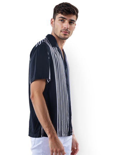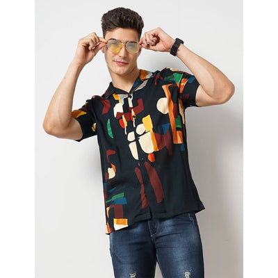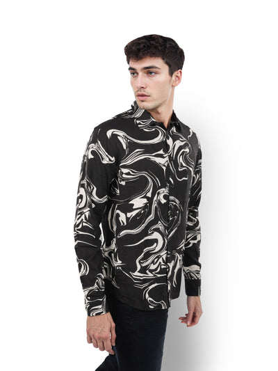 Celio* Abstract Regular Fit Viscose Black Shirt
