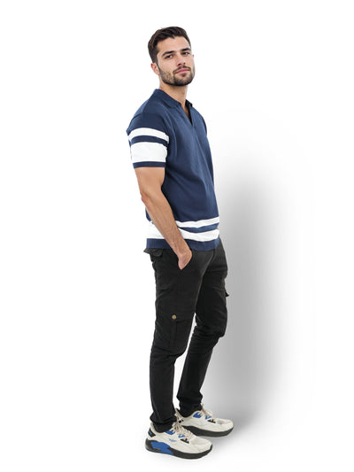 Celio* Striped Regular Fit Cotton Navy Blue T-Shirt