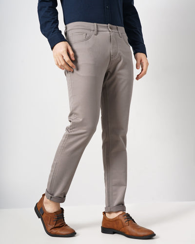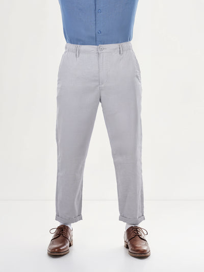 Celio* Men Grey Solid Straight Fit Linen Trouser