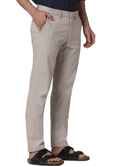 Celio* Men Beige Solid Slim Fit Cotton Trousers