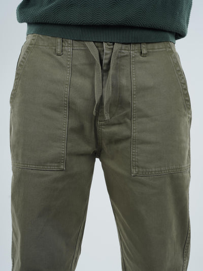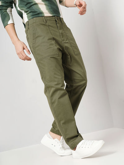 Celio* Men Olive Solid Slim Fit Cotton Trousers
