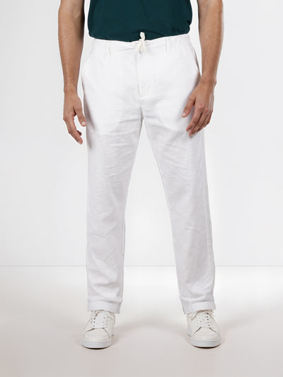 Celio* Men White Solid Relaxed Fit Cotton Trousers