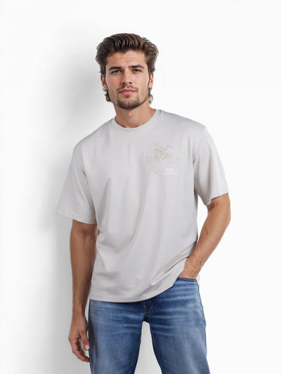 Celio* Ufc Oversized Cotton-Poly-Blend Beige T-Shirts