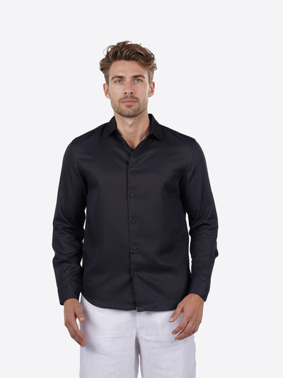 Celio* Solid Regular Fit Cotton Black Shirt