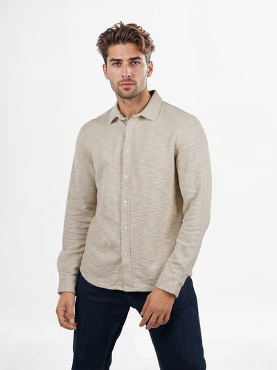 Celio* Solid Regular Fit Poly-Cotton Beige Shirts