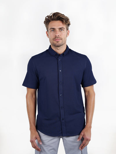 Celio* Solid Regular Fit Poly-Cotton Navy Blue Shirt
