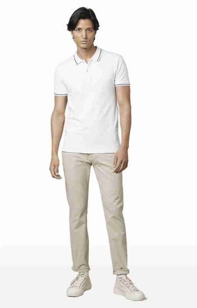 Celio* Solid Regular Fit Poly-Cotton Off White Shirt