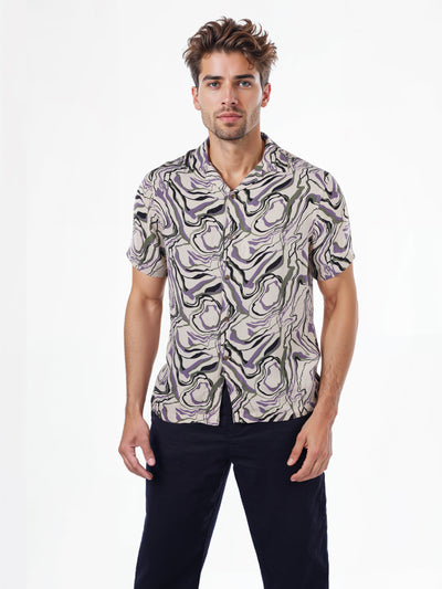 Celio* Solid Regular Fit Linen Purple Shirt