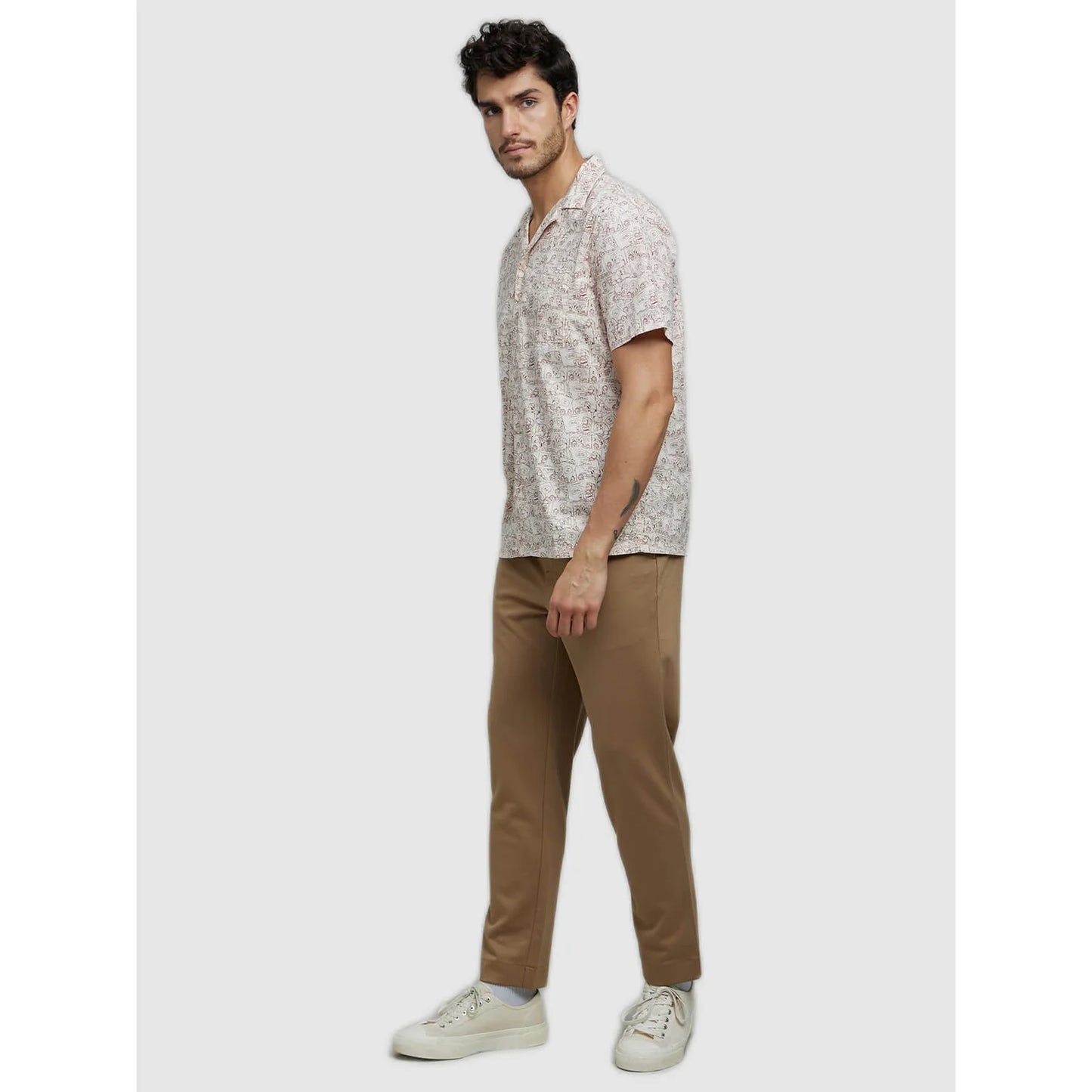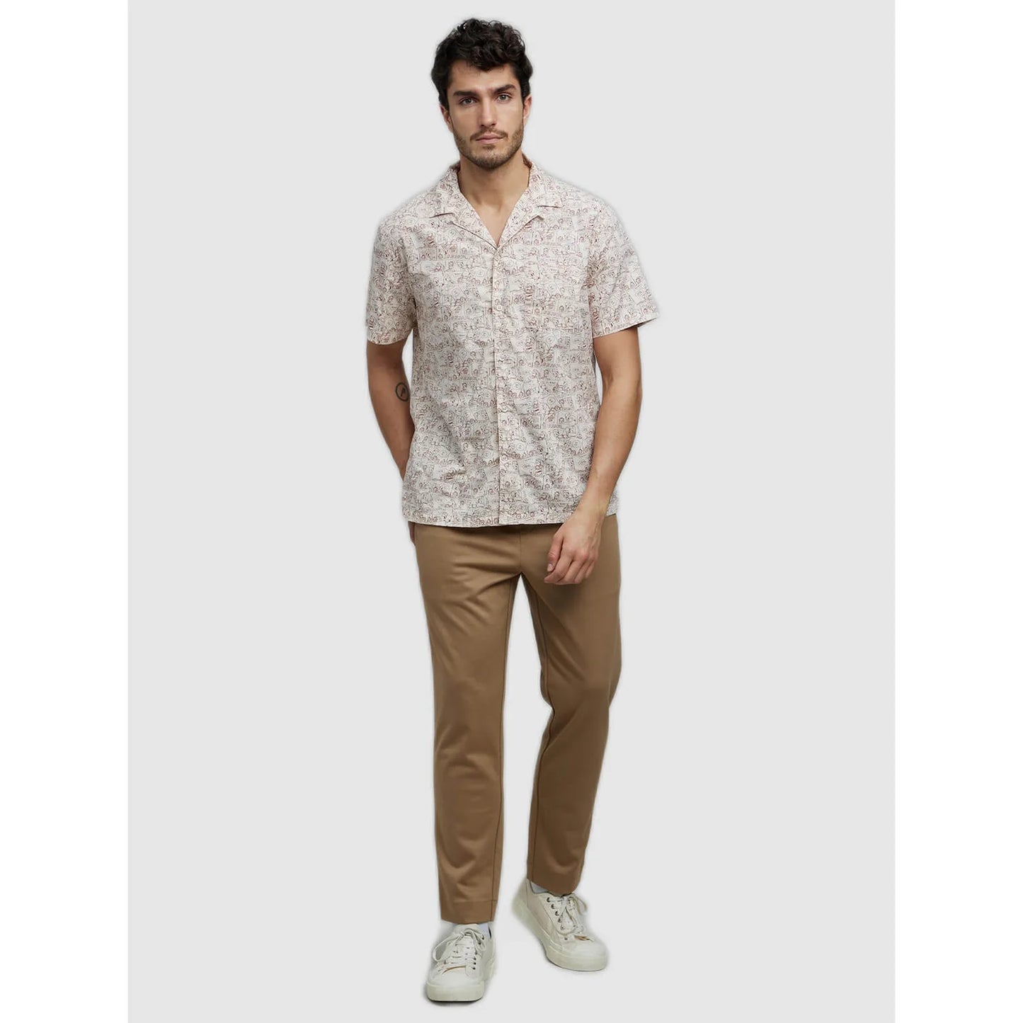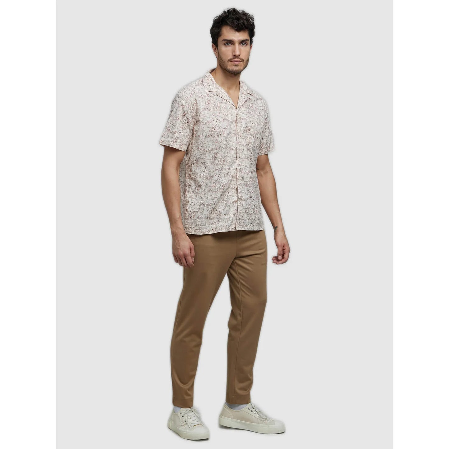 Upgrade your casual style with the GARFIELD Beige Printed Cotton Shirt, crafted from soft cotton for ultimate comfort. This shirt blends fashion with fun, featuring Garfield’s classic comic boxes scattered throughout the design. The neutral beige color provides a versatile base, making it easy to pair with jeans or chinos for a relaxed yet stylish look. With short sleeves and a comfortable fit, this shirt is perfect for any casual occasion, whether you’re out with friends, enjoying a weekend getaway, or just relaxing at home. The playful Garfield comic boxes scattered across the shirt bring a whimsical touch to your outfit, showcasing the iconic cat’s quirky humor in a stylish, understated way. Whether you're a Garfield fan or simply looking for a unique addition to your wardrobe, this shirt offers a perfect balance of fun and fashion. It’s the ideal choice for men who want to stand out with a bit of character and charm in their everyday wear. Disclaimer: All other items in the image are only for display purposes and will not be a part of the delivery content. Product colour may slightly vary due to photographic lighting sources. Country of Origin - India.