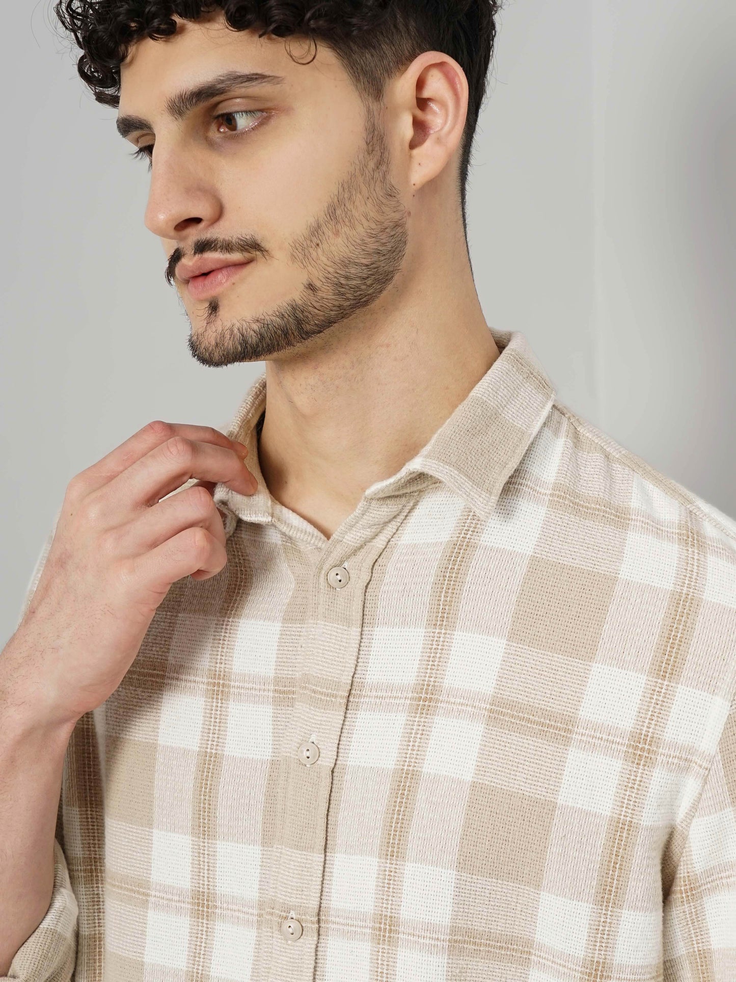 Celio* Checked Regular Fit Cotton Beige Shirt