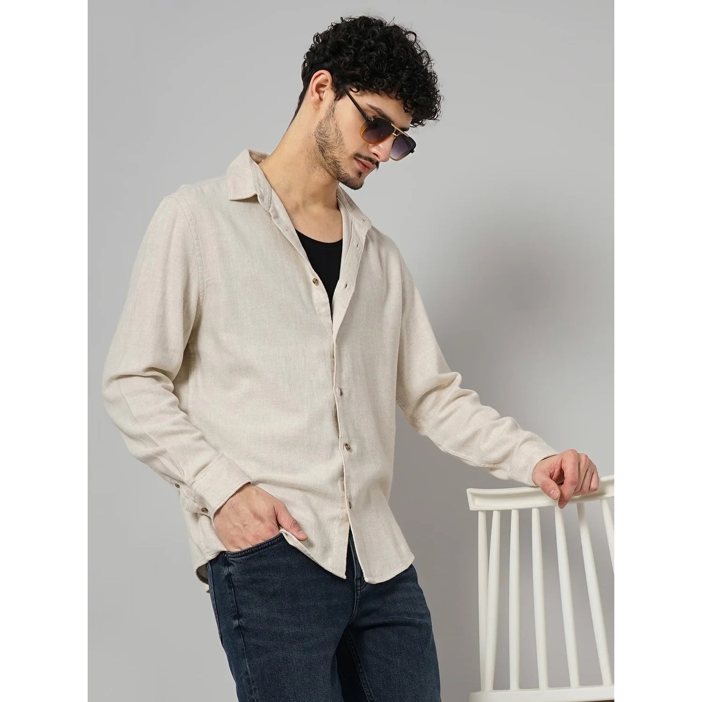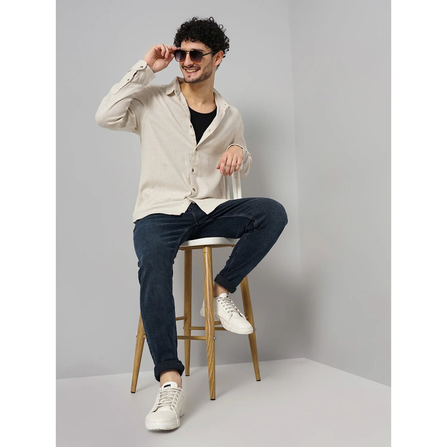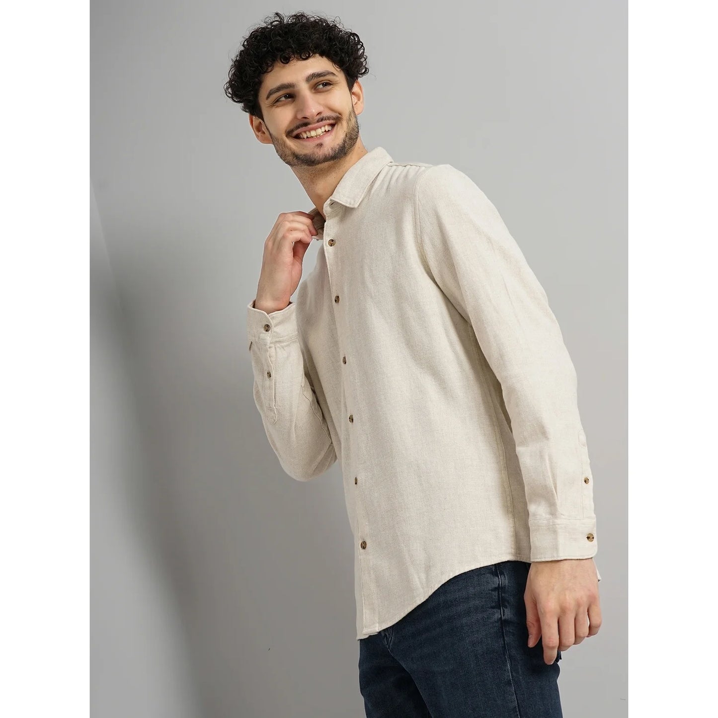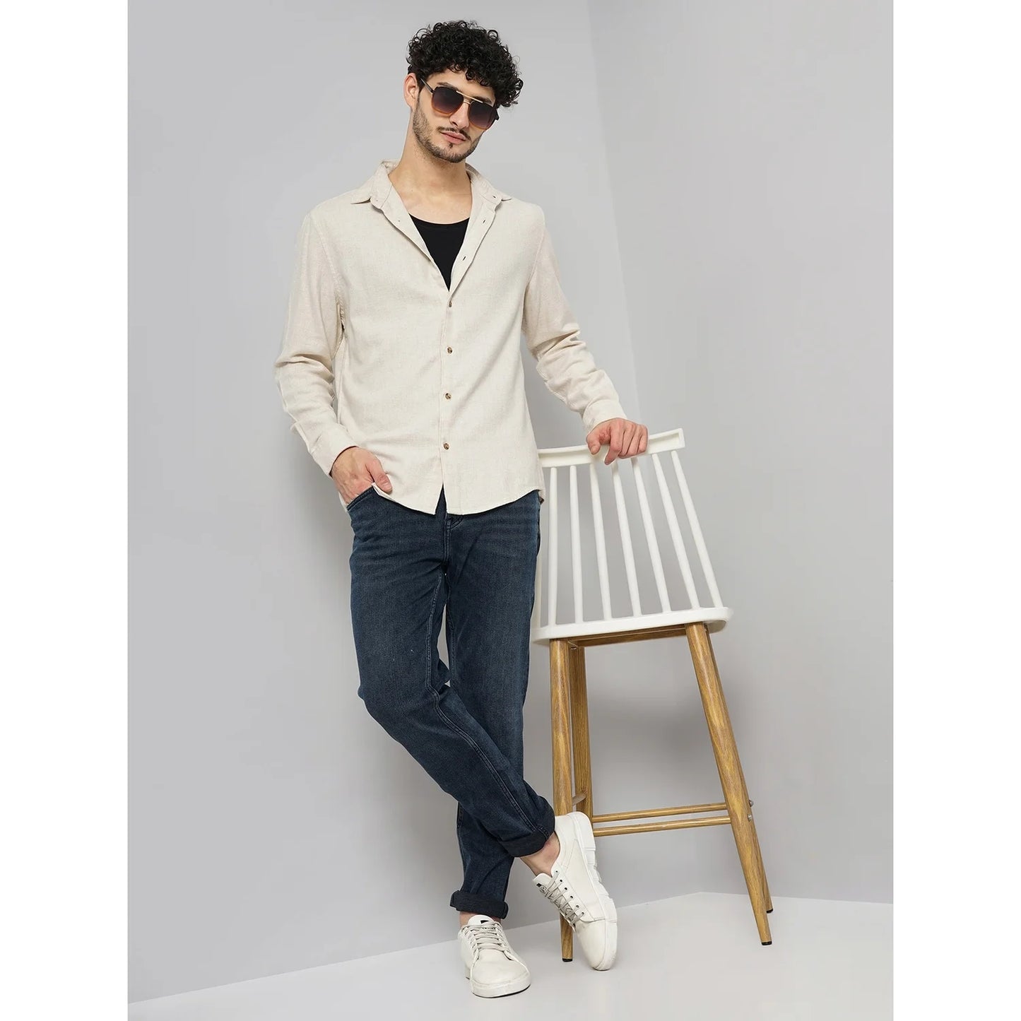 Celio* Solid Regular Fit Cotton Beige Shirt