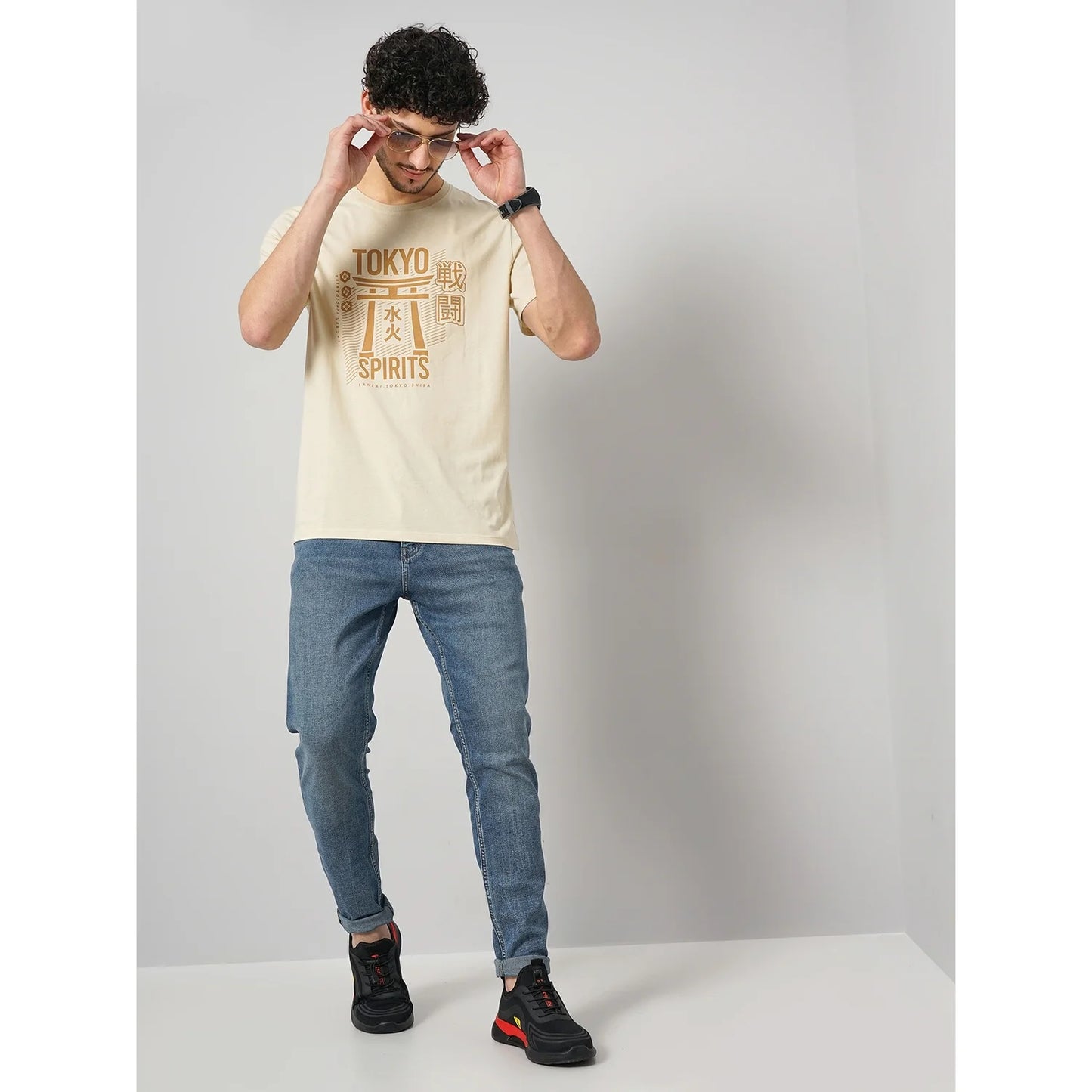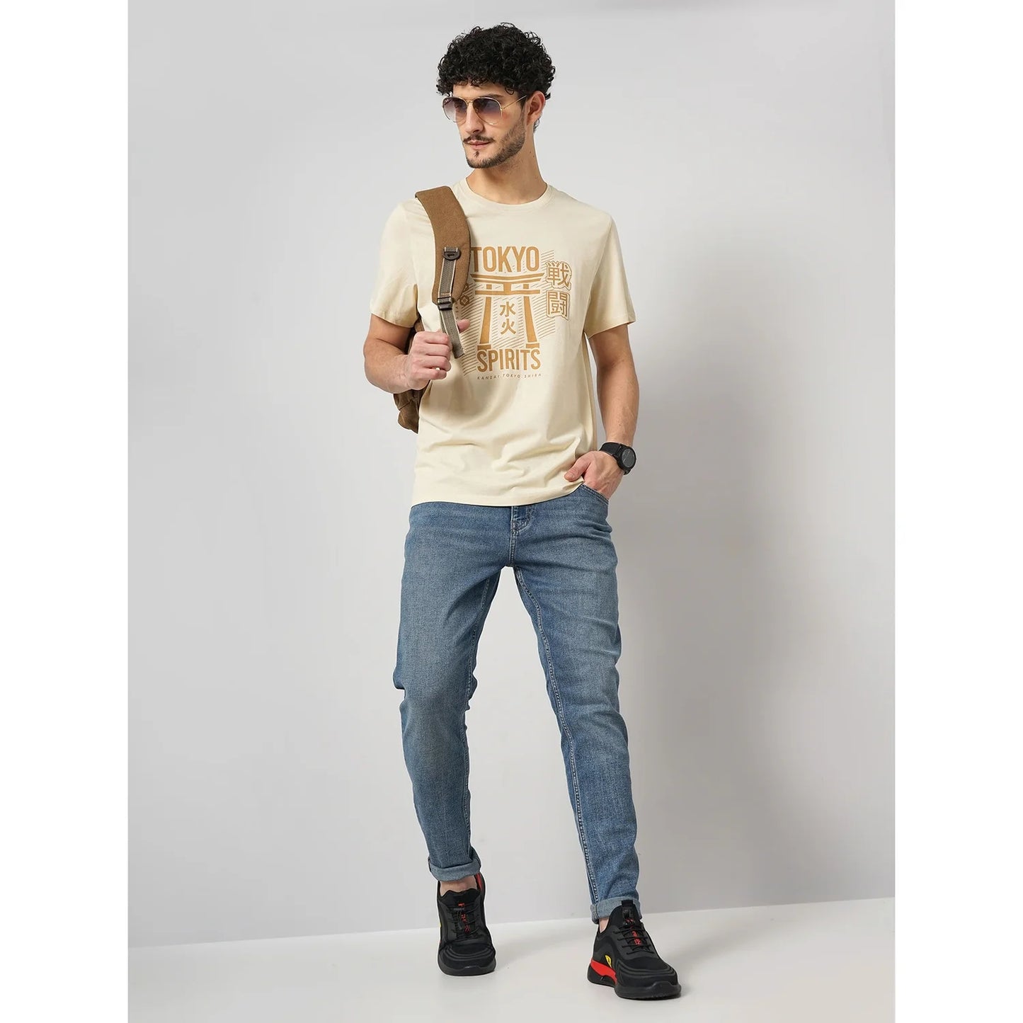 Celio* Graphics Regular Fit Cotton Beige T-Shirt