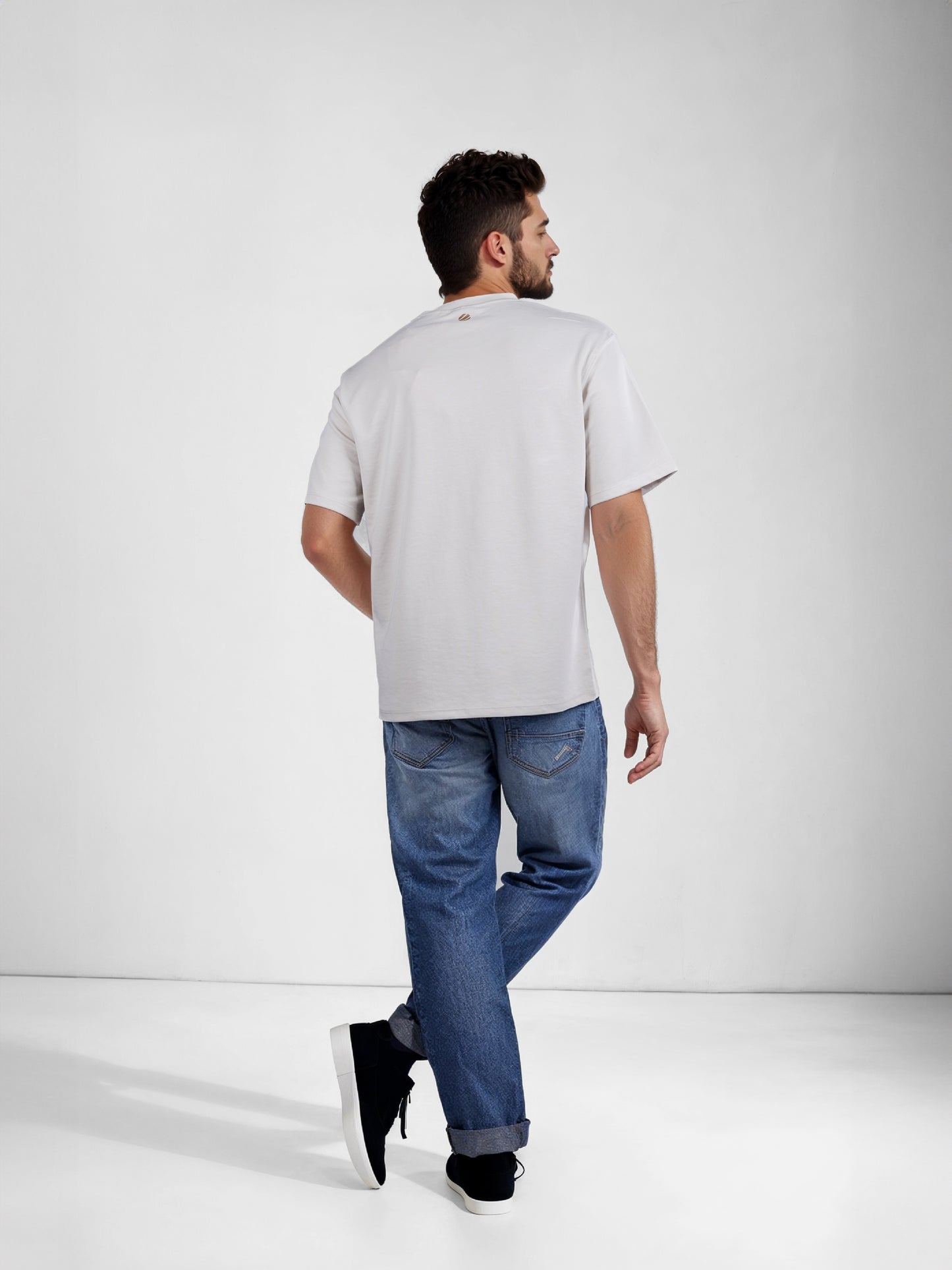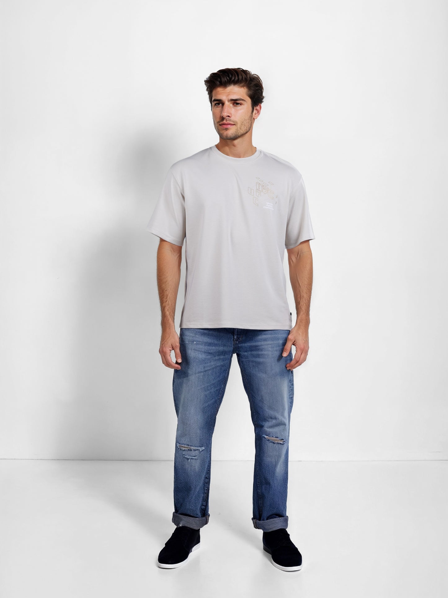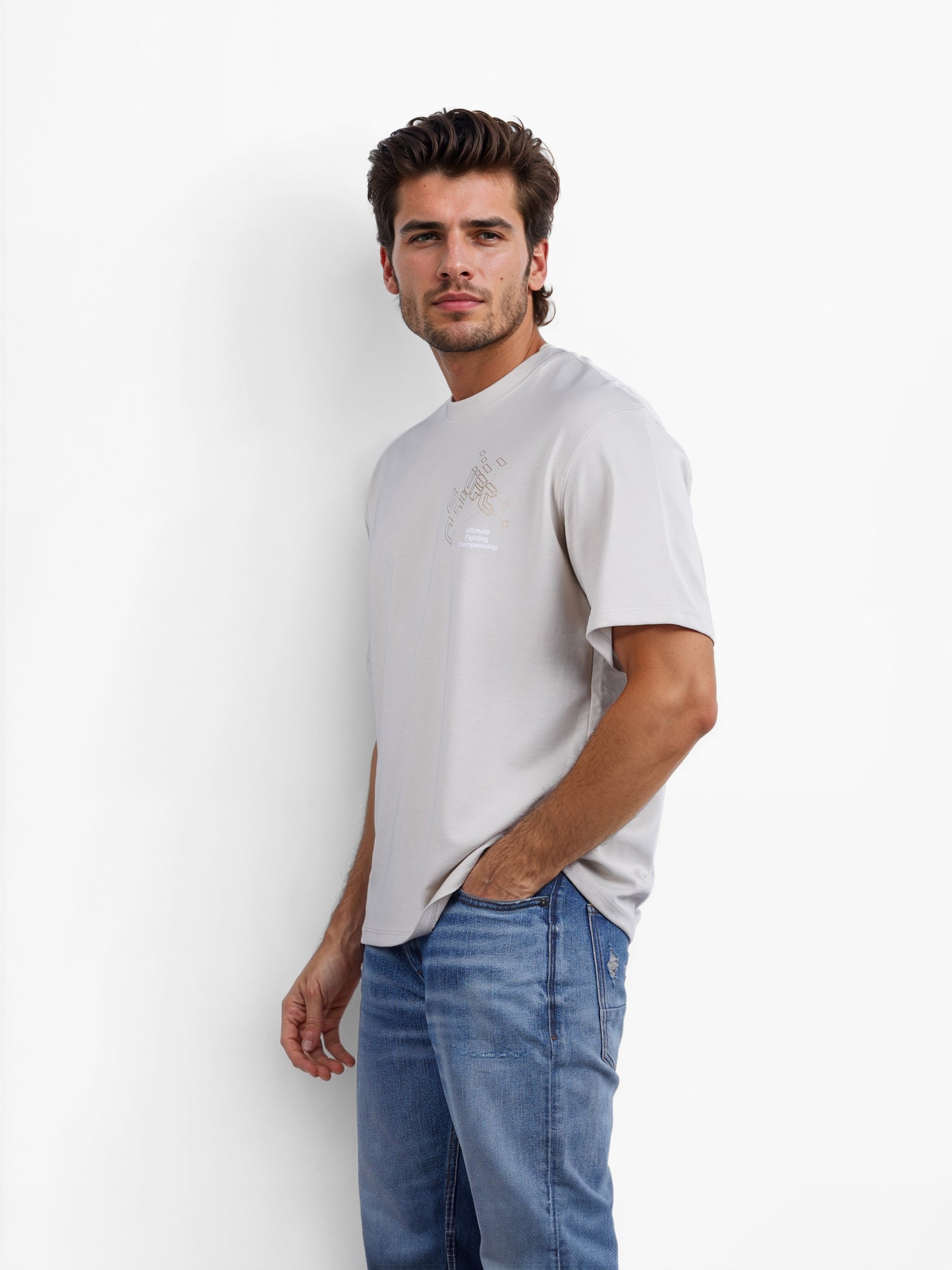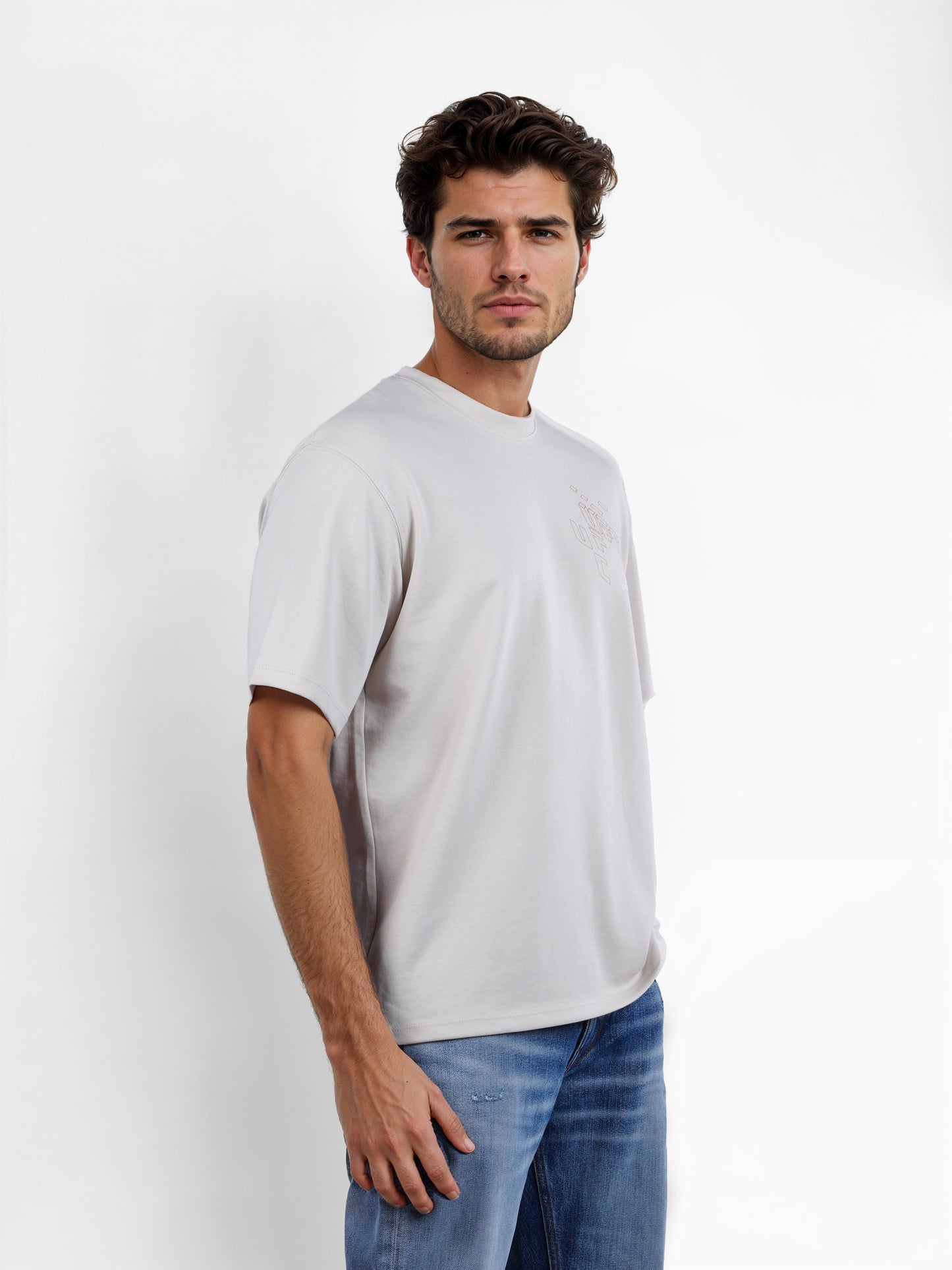 Elevate your casual wardrobe with the Celio Men Beige Printed Oversized T-shirt. Crafted from a comfortable cotton-poly blend, it features short sleeves and a trendy design perfect for any occasion. Disclaimer: All other items in the image are only for display purposes and will not be a part of the delivery content. Product colour may slightly vary due to photographic lighting sources. Country of Origin - India. LJEUFCT
