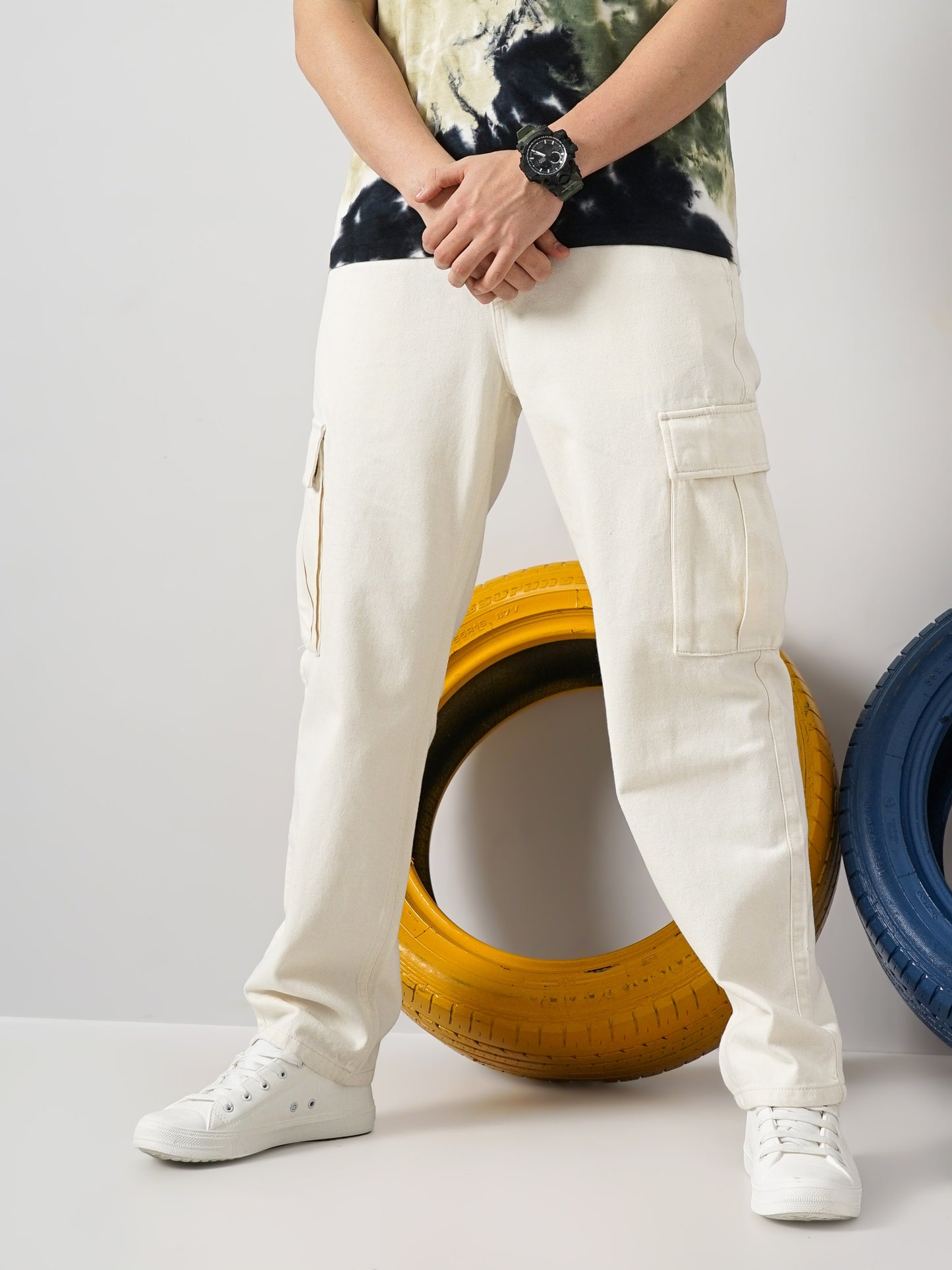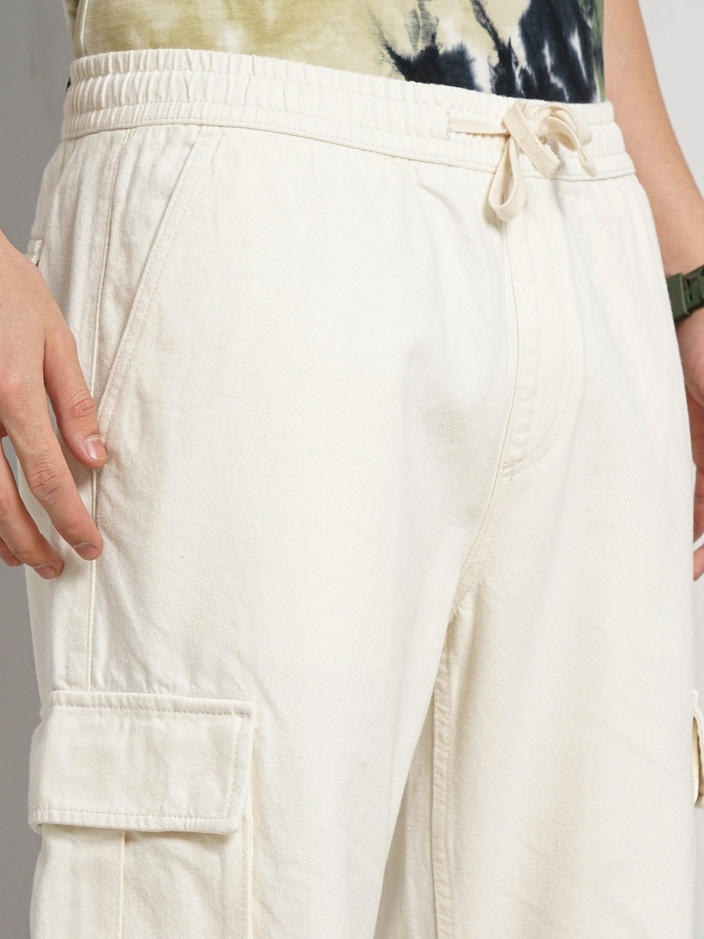 Discover comfort and style with Celio's Men Solid Loose Fit Cotton Trendy Cargos in Beige, perfect for casual outings. Disclaimer: All other items in the image are only for display purposes and will not be a part of the delivery content. Product colour may slightly vary due to photographic lighting sources. Country of Origin - India.