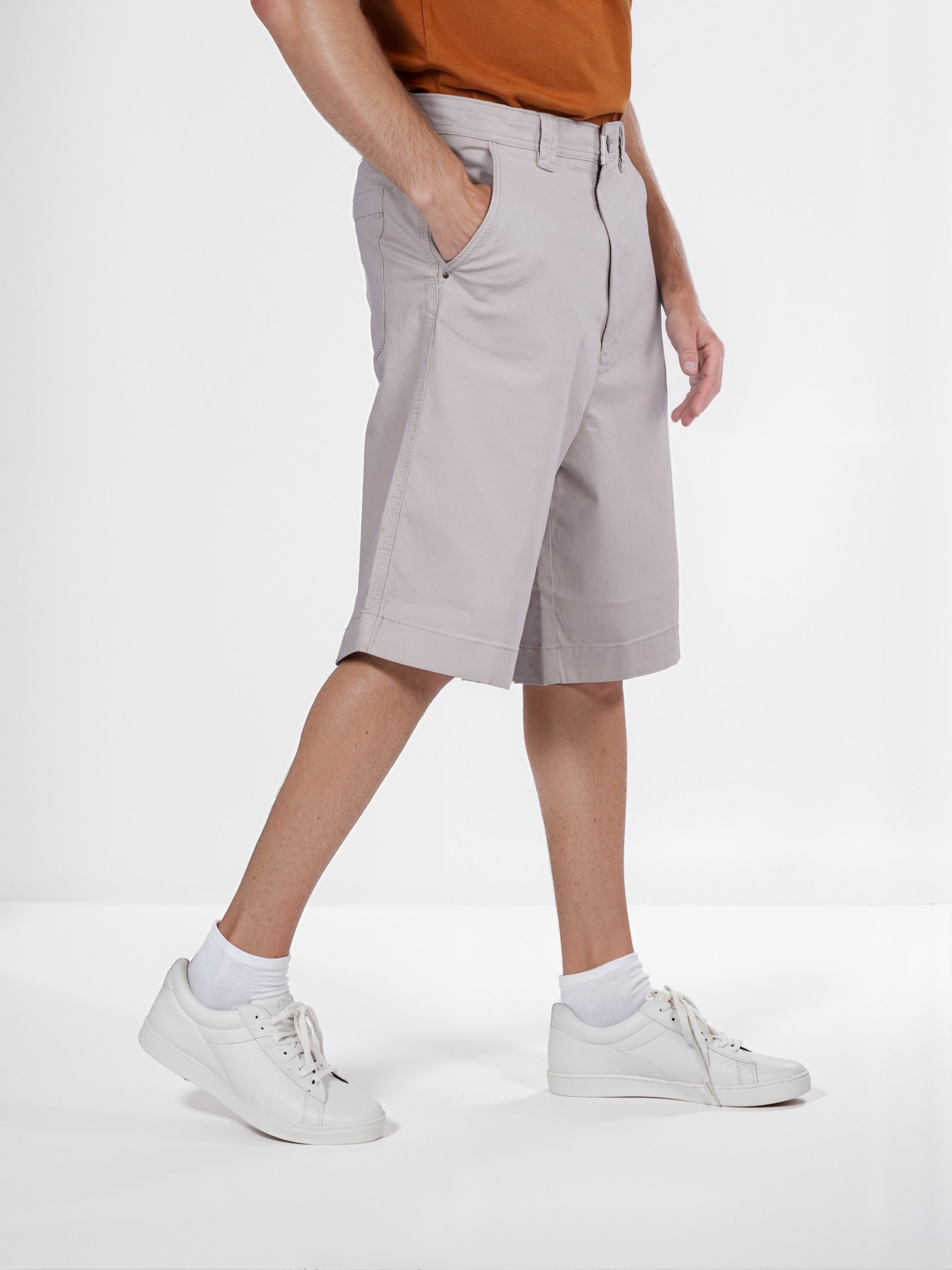 Explore casual comfort with Celio's beige cotton Bermuda shorts for men. Featuring a regular fit, these stylish shorts are perfect for laid-back occasions. Disclaimer: All other items in the image are only for display purposes and will not be a part of the delivery content. Product colour may slightly vary due to photographic lighting sources. Country of Origin - India.