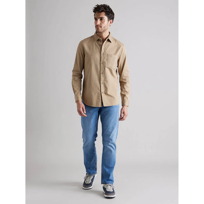 Celio* Solid Regular Fit Cotton Beige Shirt