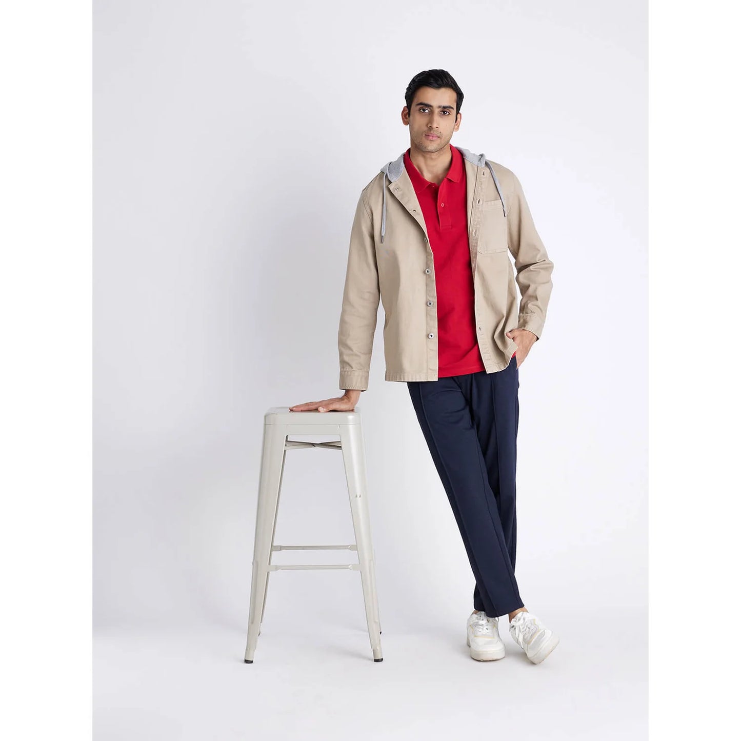 Celio* Solid Regular Fit Cotton Beige Shirt