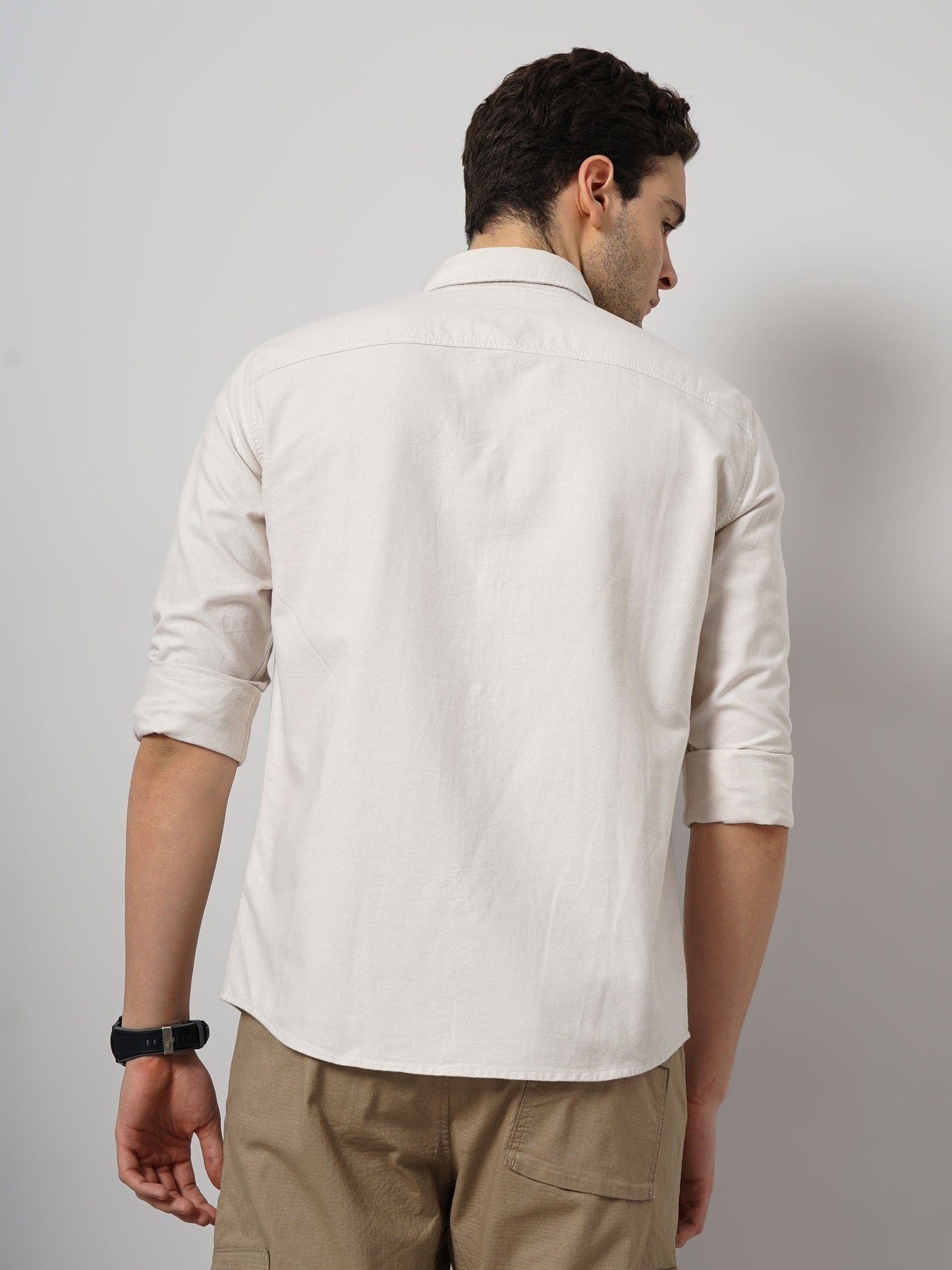 Celio* Solid Regular Fit Cotton Beige Shirt