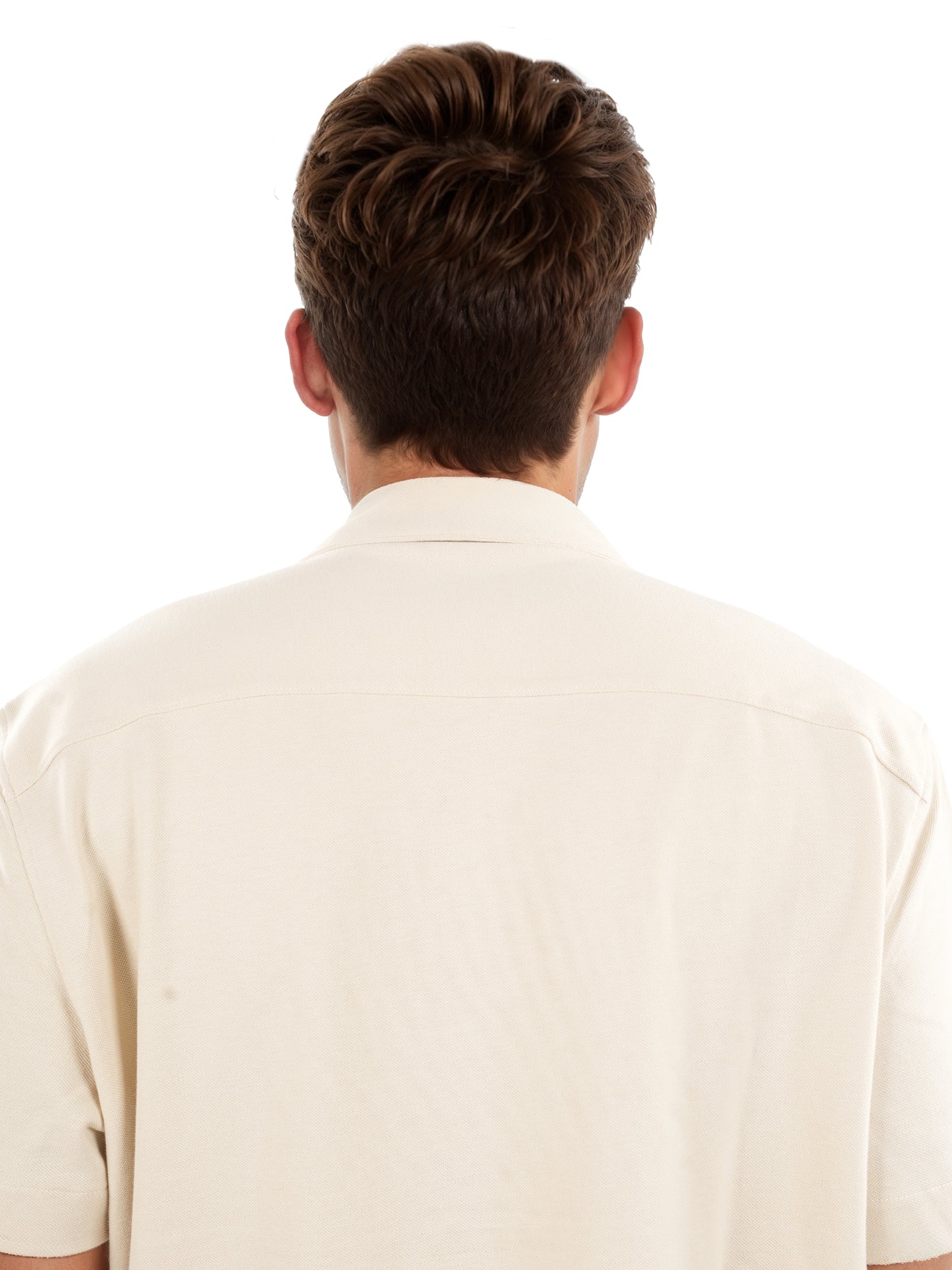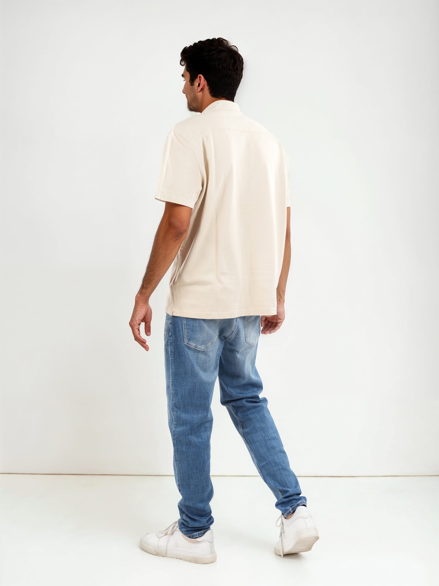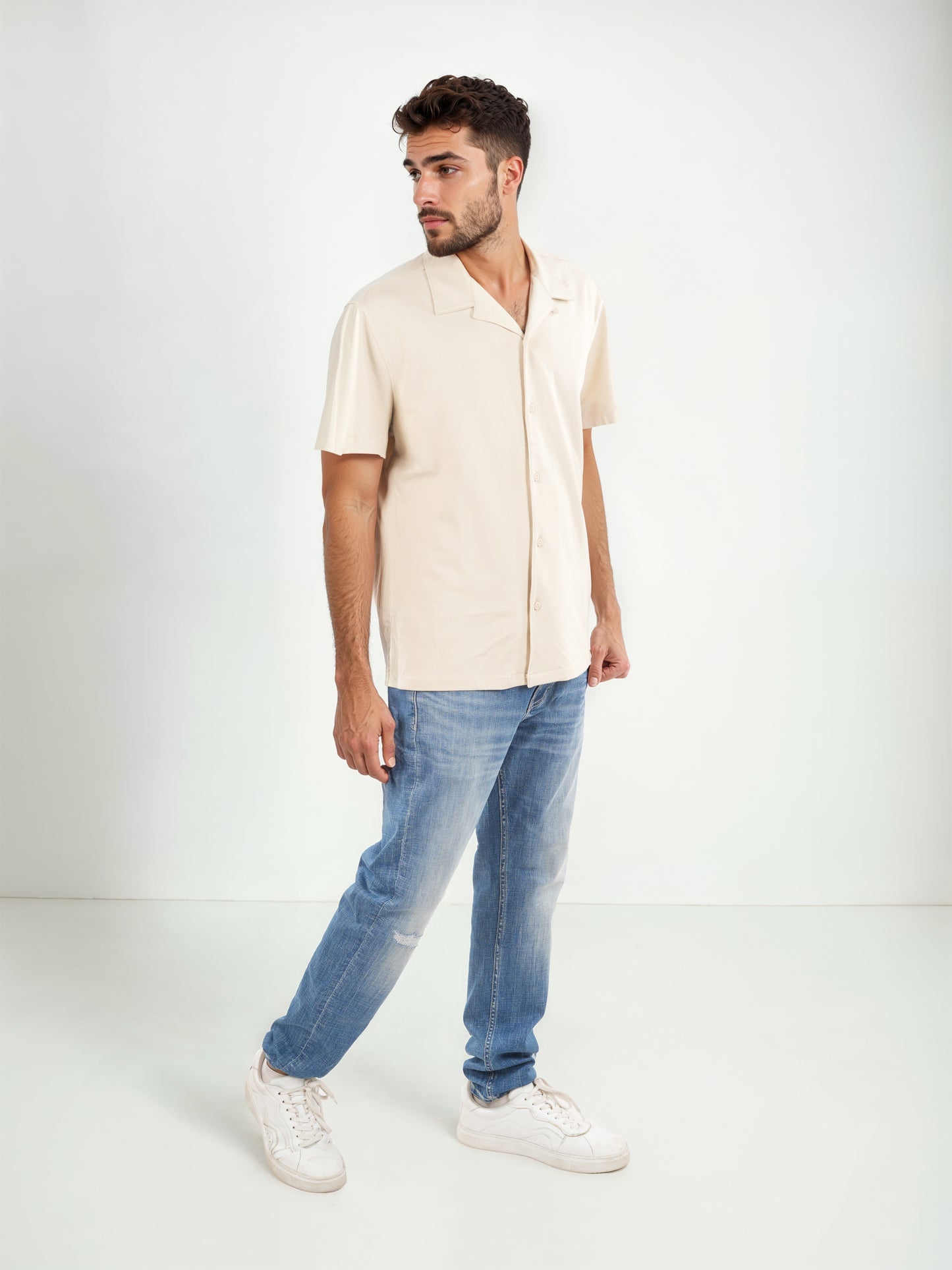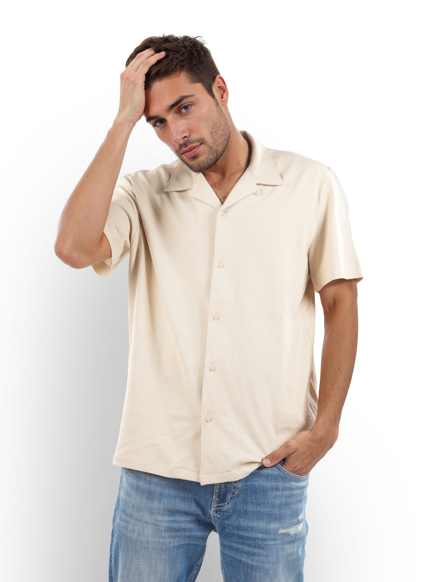 Elevate your casual style with the Celio Men Beige Cuban Collar Shirt. Made from soft cotton, this regular fit, short sleeve shirt is perfect for laid-back outings. Disclaimer: All other items in the image are only for display purposes and will not be a part of the delivery content. Product colour may slightly vary due to photographic lighting sources. Country of Origin - India.