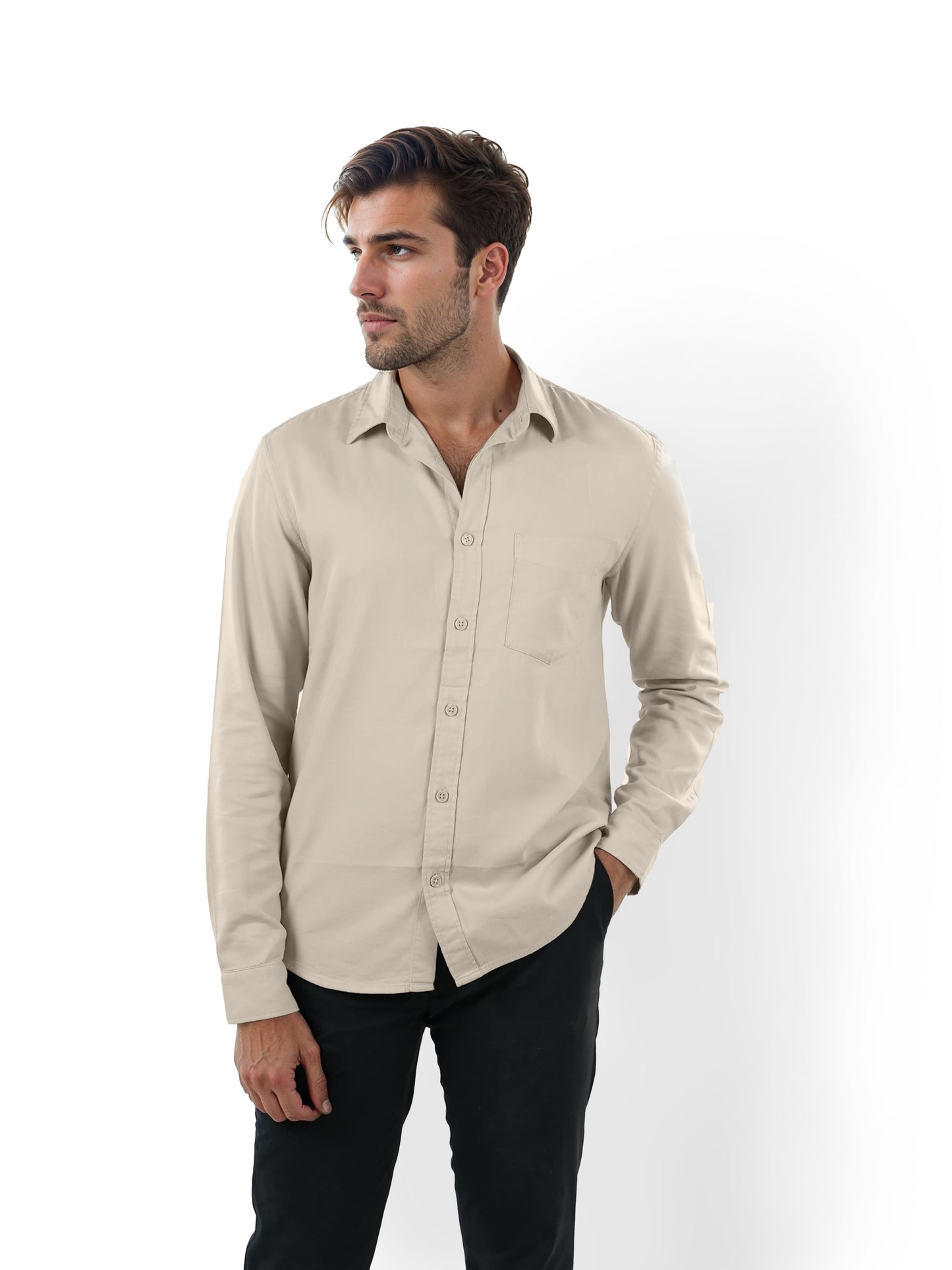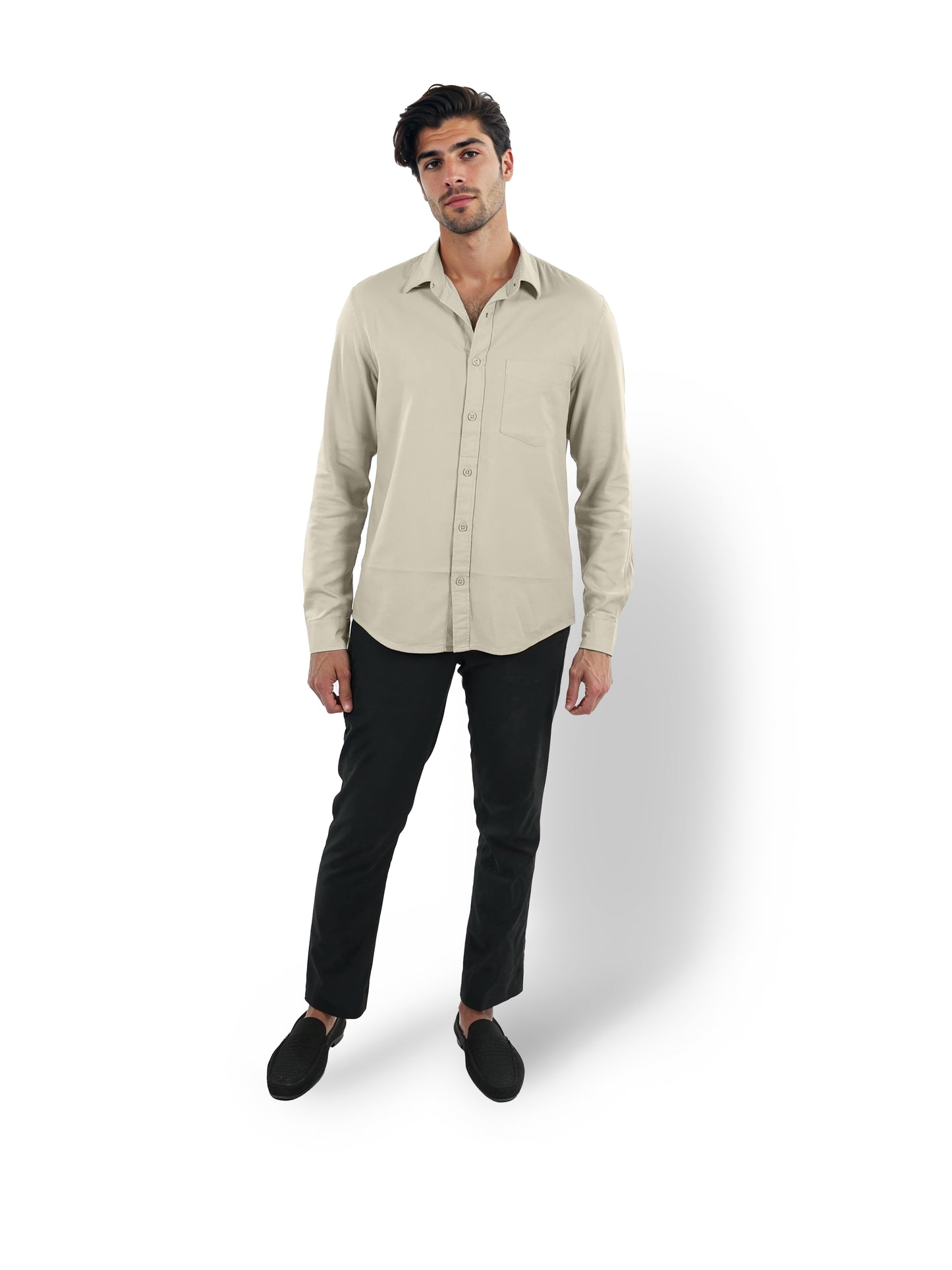 Upgrade your wardrobe with this beige casual shirt from Celio for men. Made of cotton, it features a spread collar and long sleeves, perfect for a relaxed yet stylish look. Disclaimer: All other items in the image are only for display purposes and will not be a part of the delivery content. Product colour may slightly vary due to photographic lighting sources. Country of Origin - India.