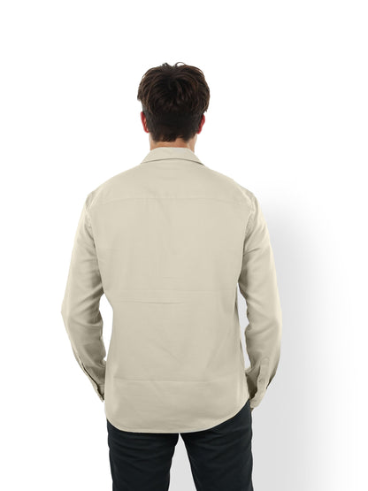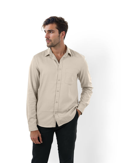 Celio* Solid Regular Fit Cotton Beige Shirt