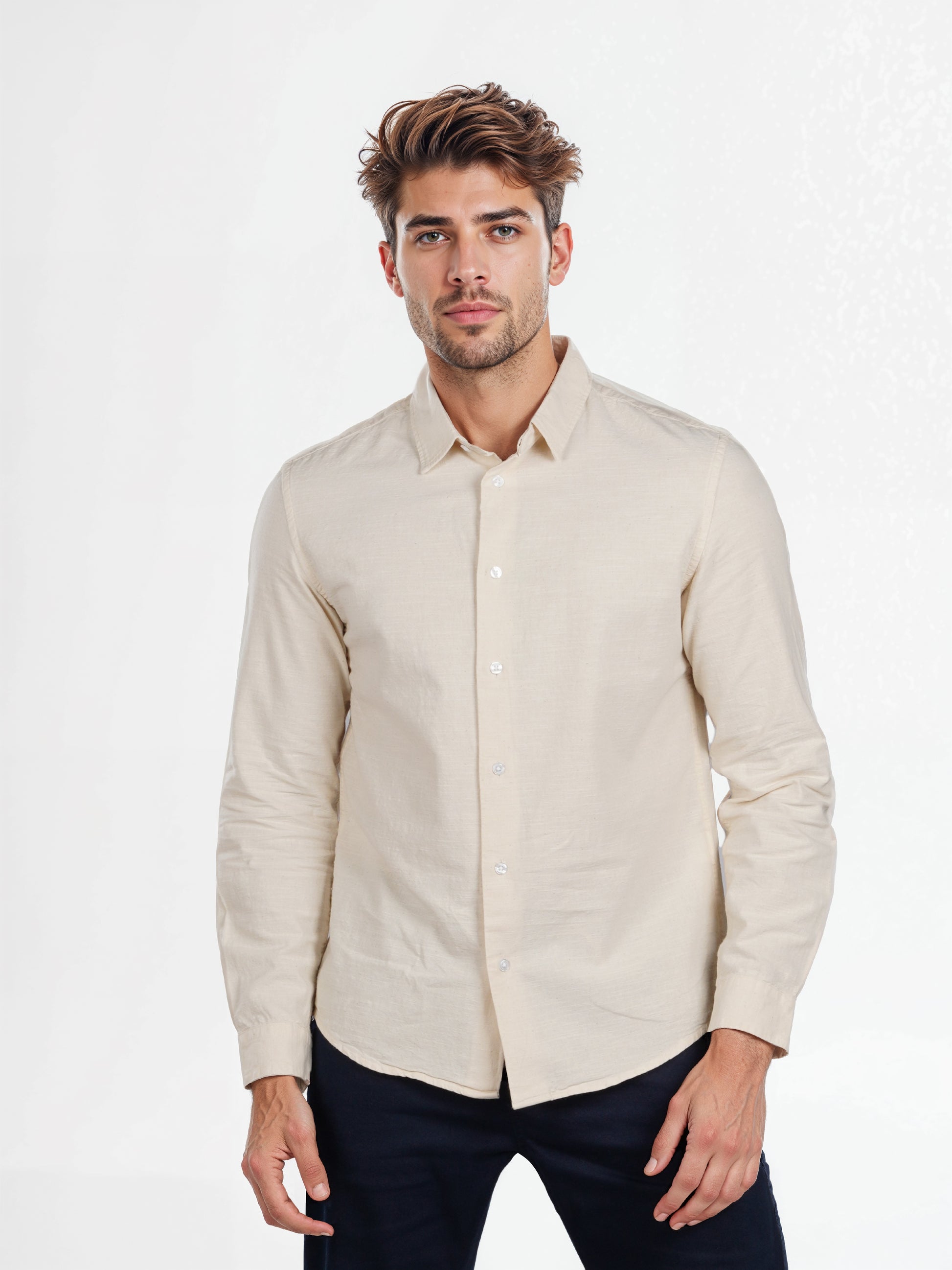 Elevate your casual wardrobe with the Celio Men Beige Cotton Shirt. This regular fit shirt features long sleeves, perfect for a relaxed yet stylish look. Disclaimer: All other items in the image are only for display purposes and will not be a part of the delivery content. Product colour may slightly vary due to photographic lighting sources. Country of Origin - India.