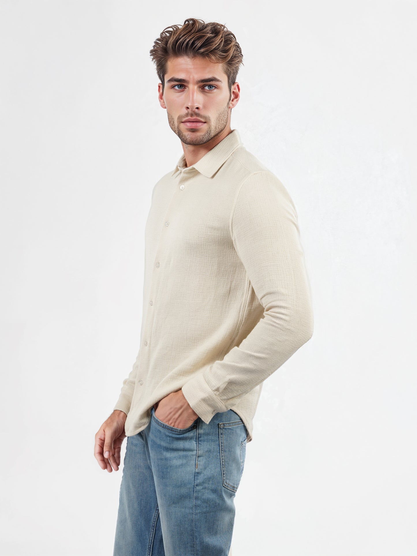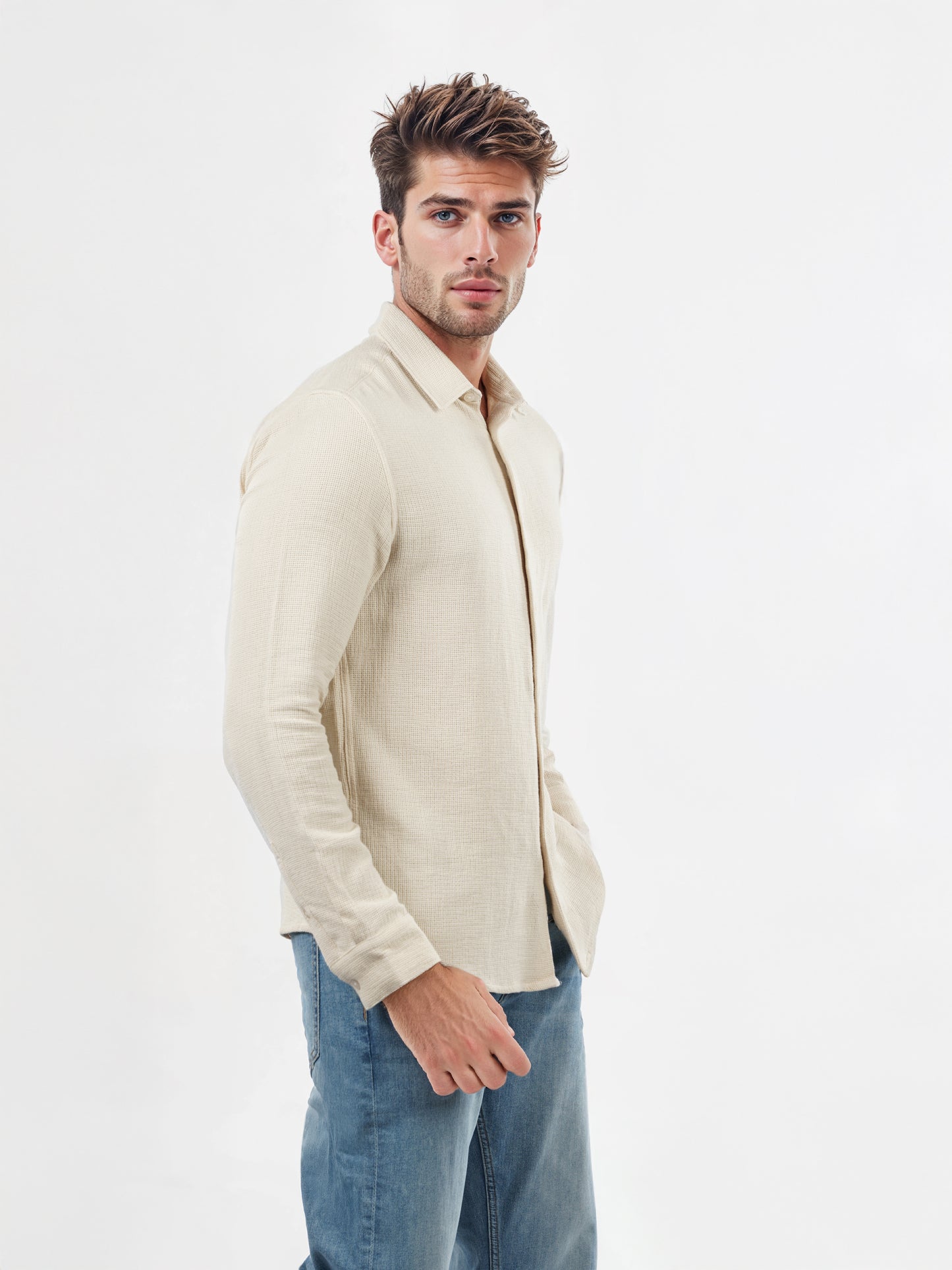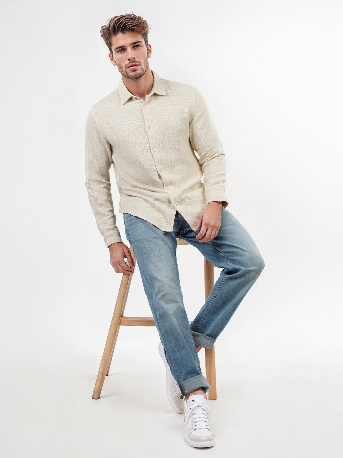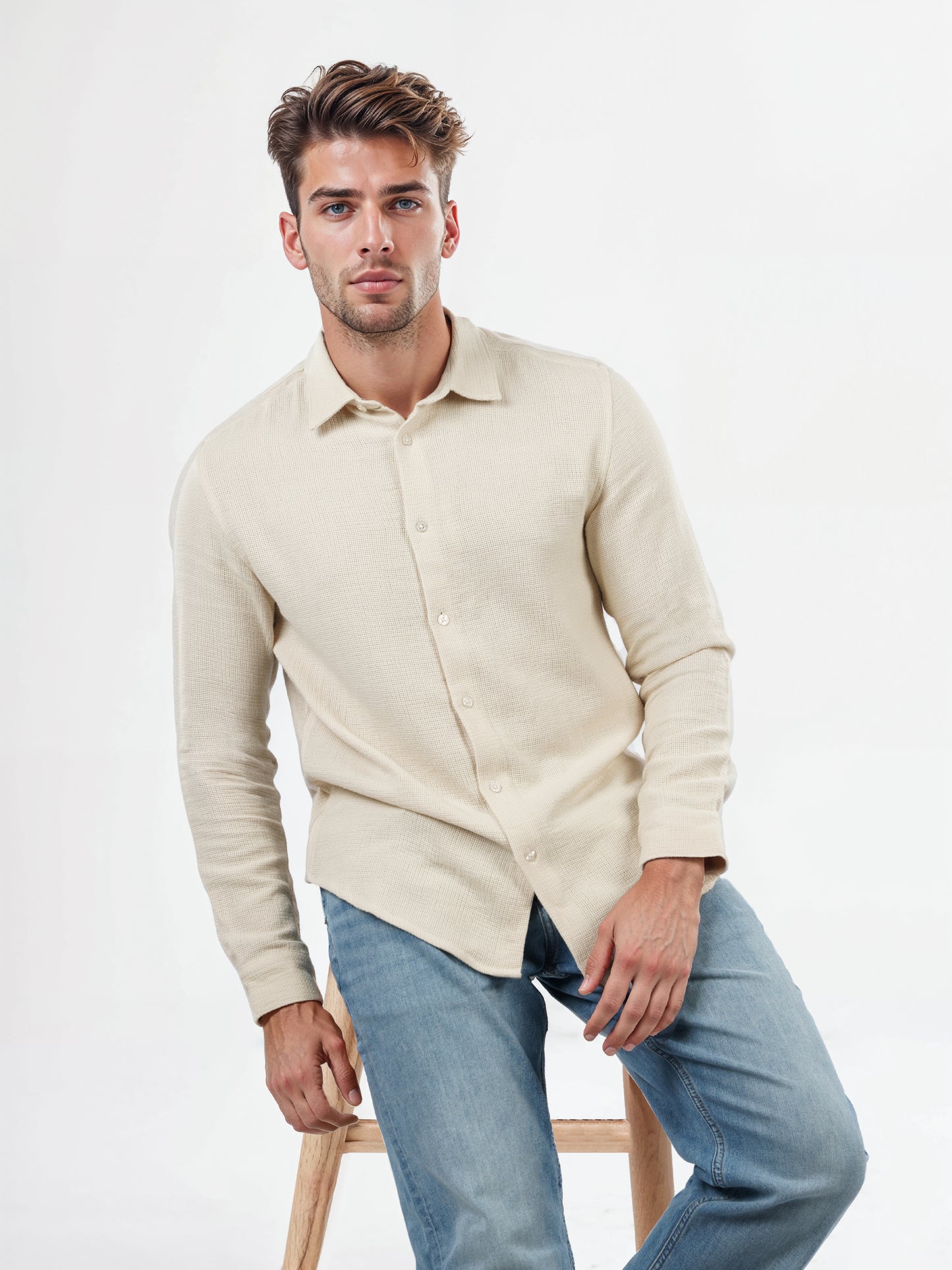 Elevate your casual wardrobe with the Celio Men Beige Solid Shirt. Crafted from soft cotton, it features long sleeves and a regular fit, perfect for any casual occasion. Disclaimer: All other items in the image are only for display purposes and will not be a part of the delivery content. Product colour may slightly vary due to photographic lighting sources. Country of Origin - India.