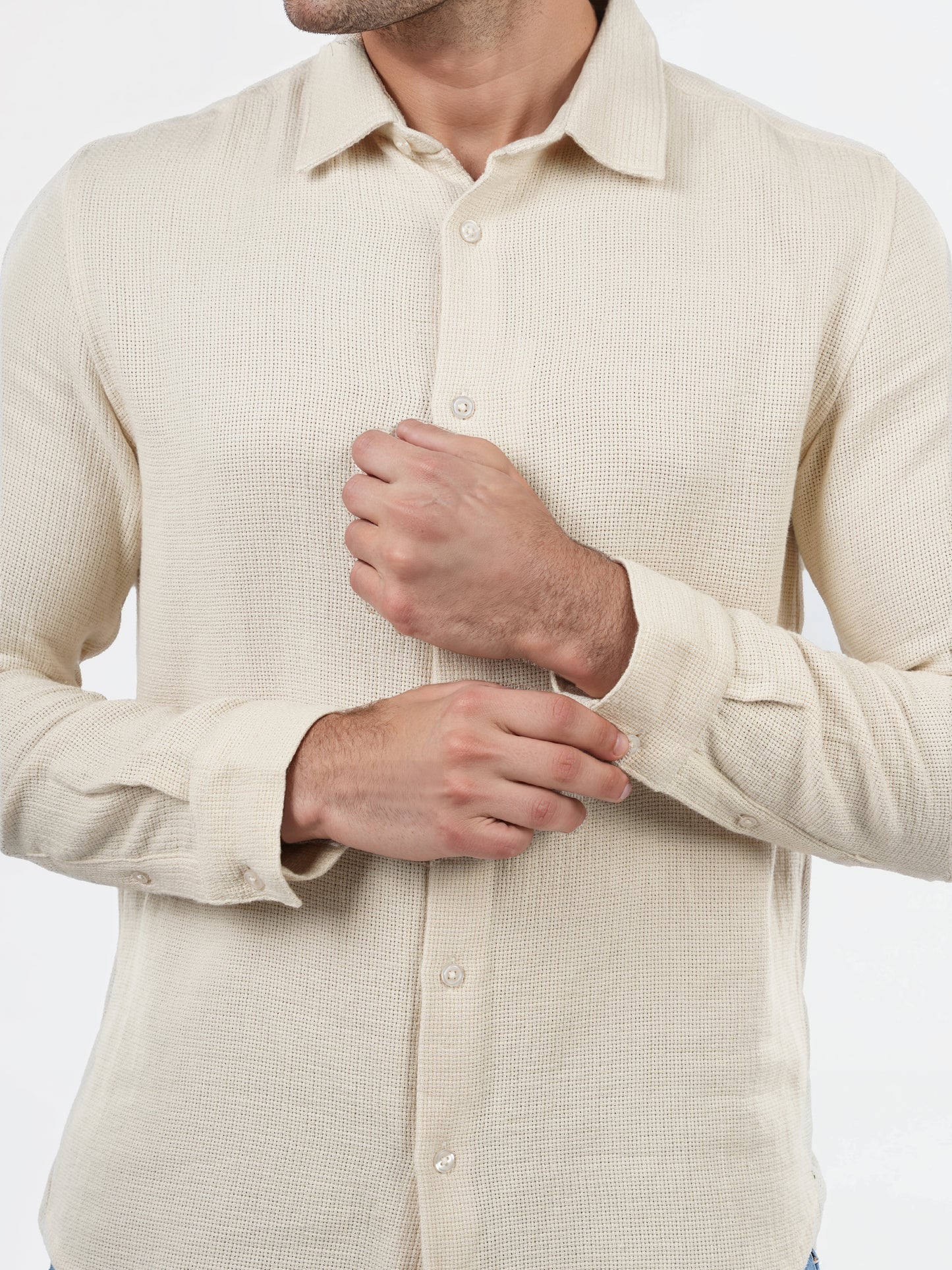 Celio* Solid Regular Fit Cotton Beige Shirts
