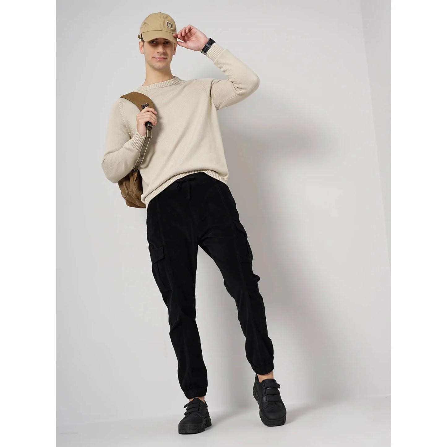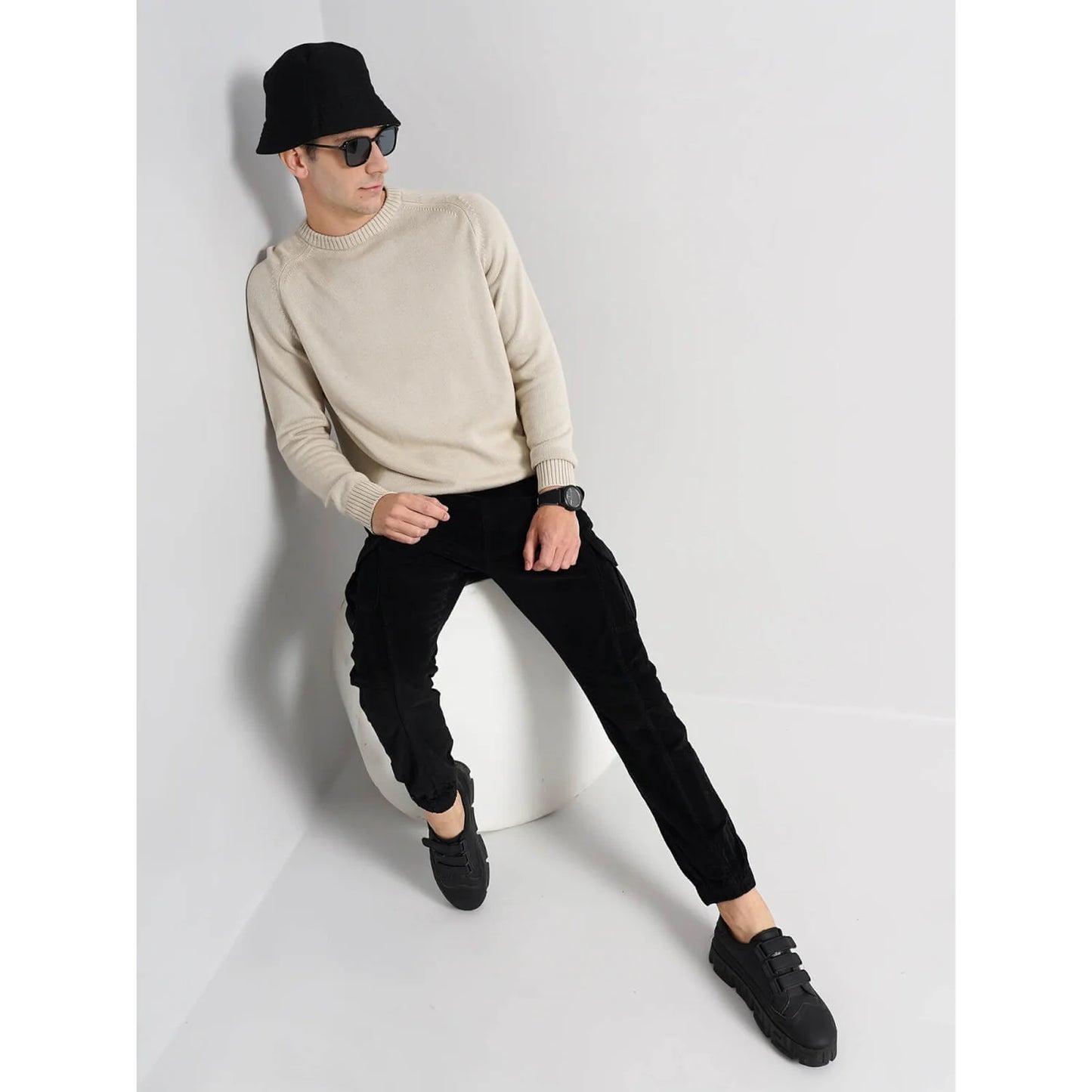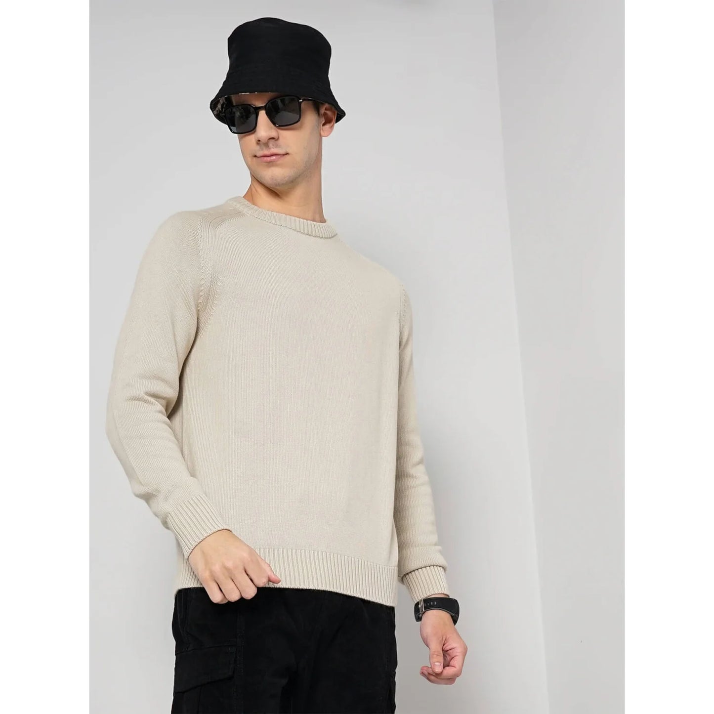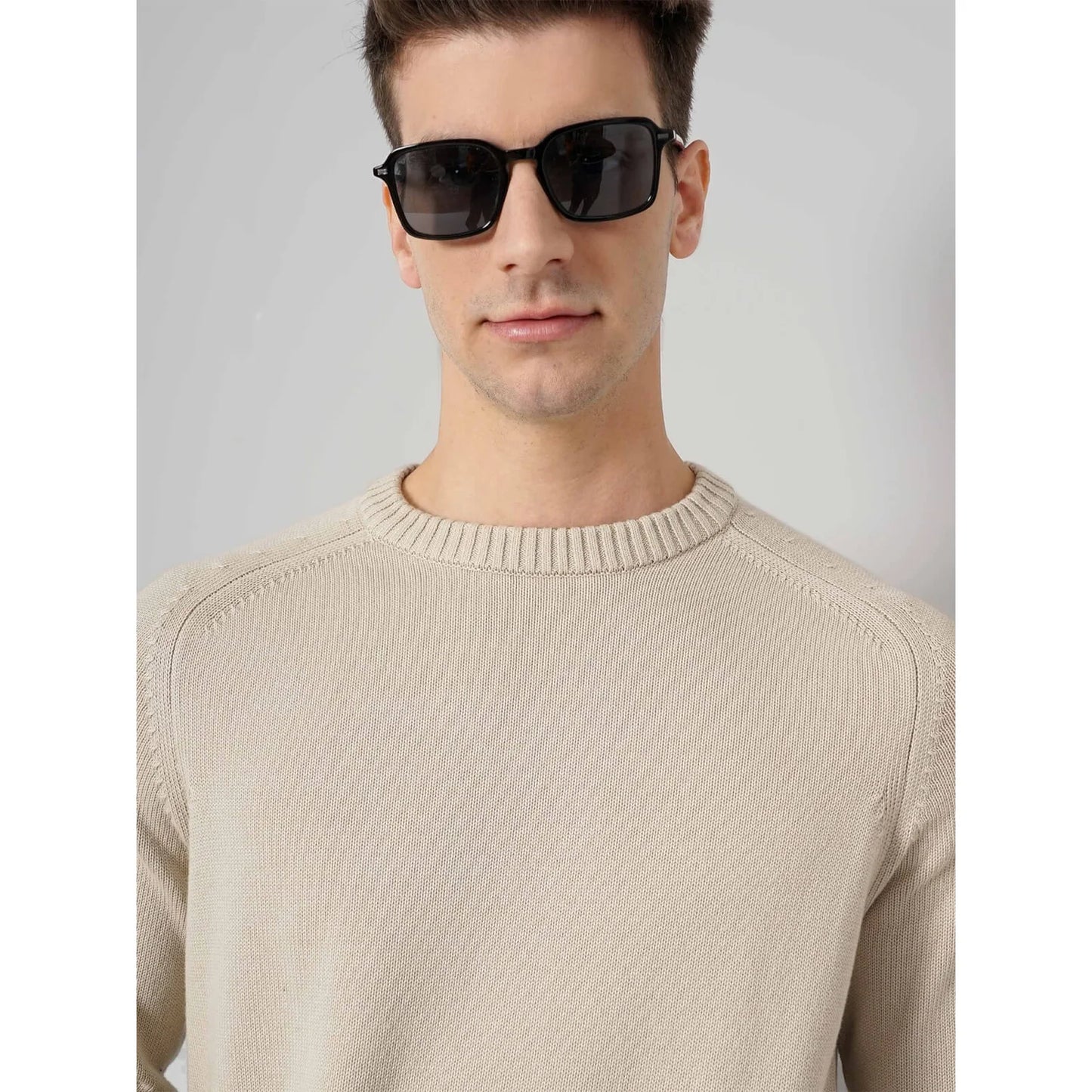Celio* Solid Regular Fit Cotton Beige Sweater
