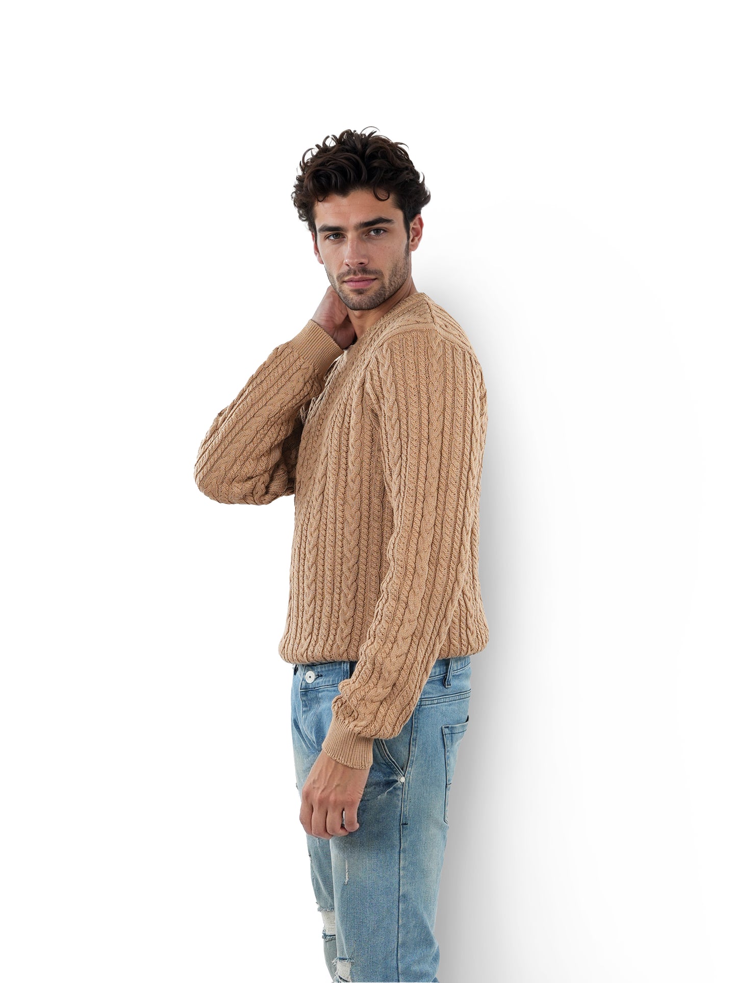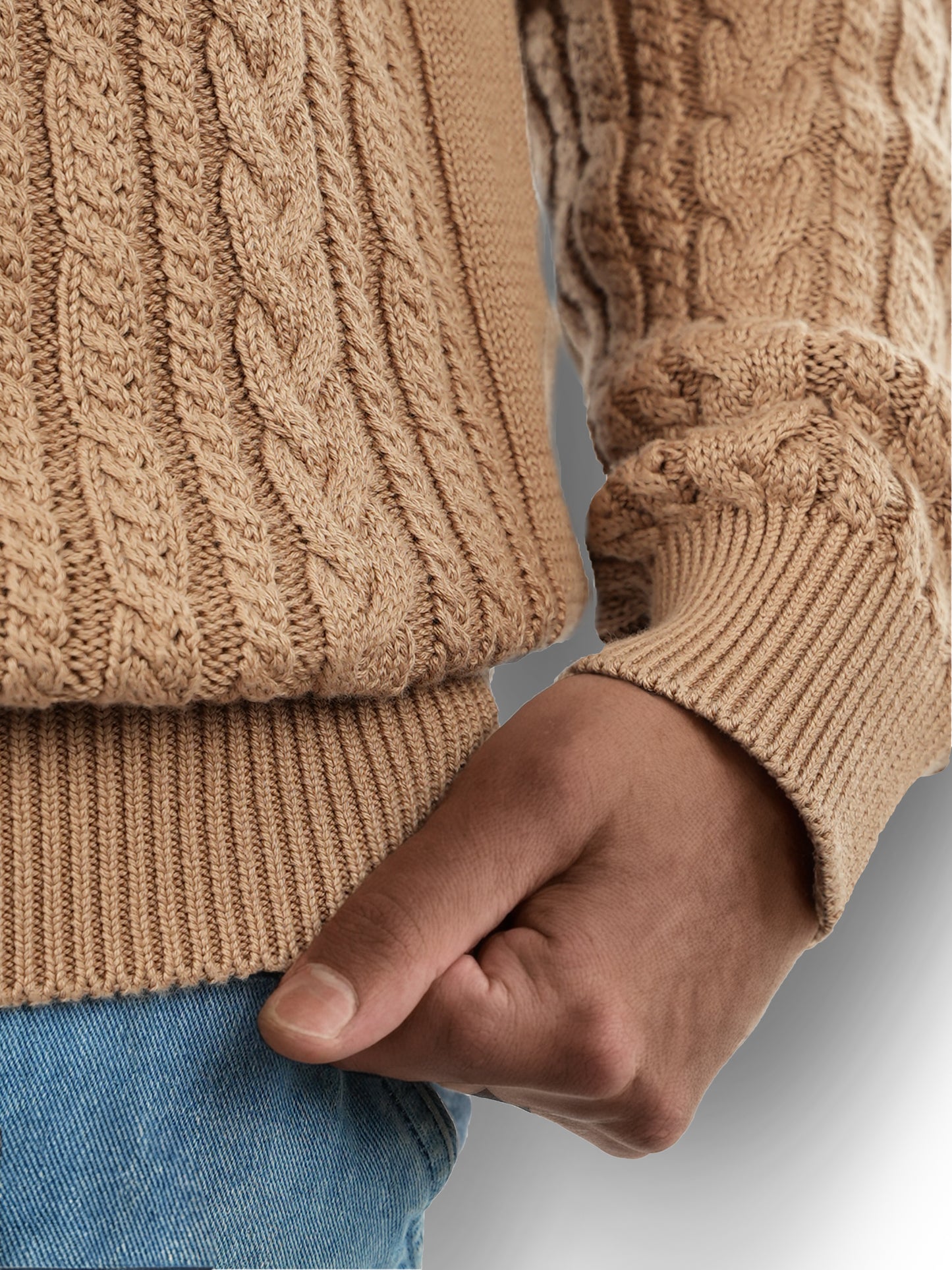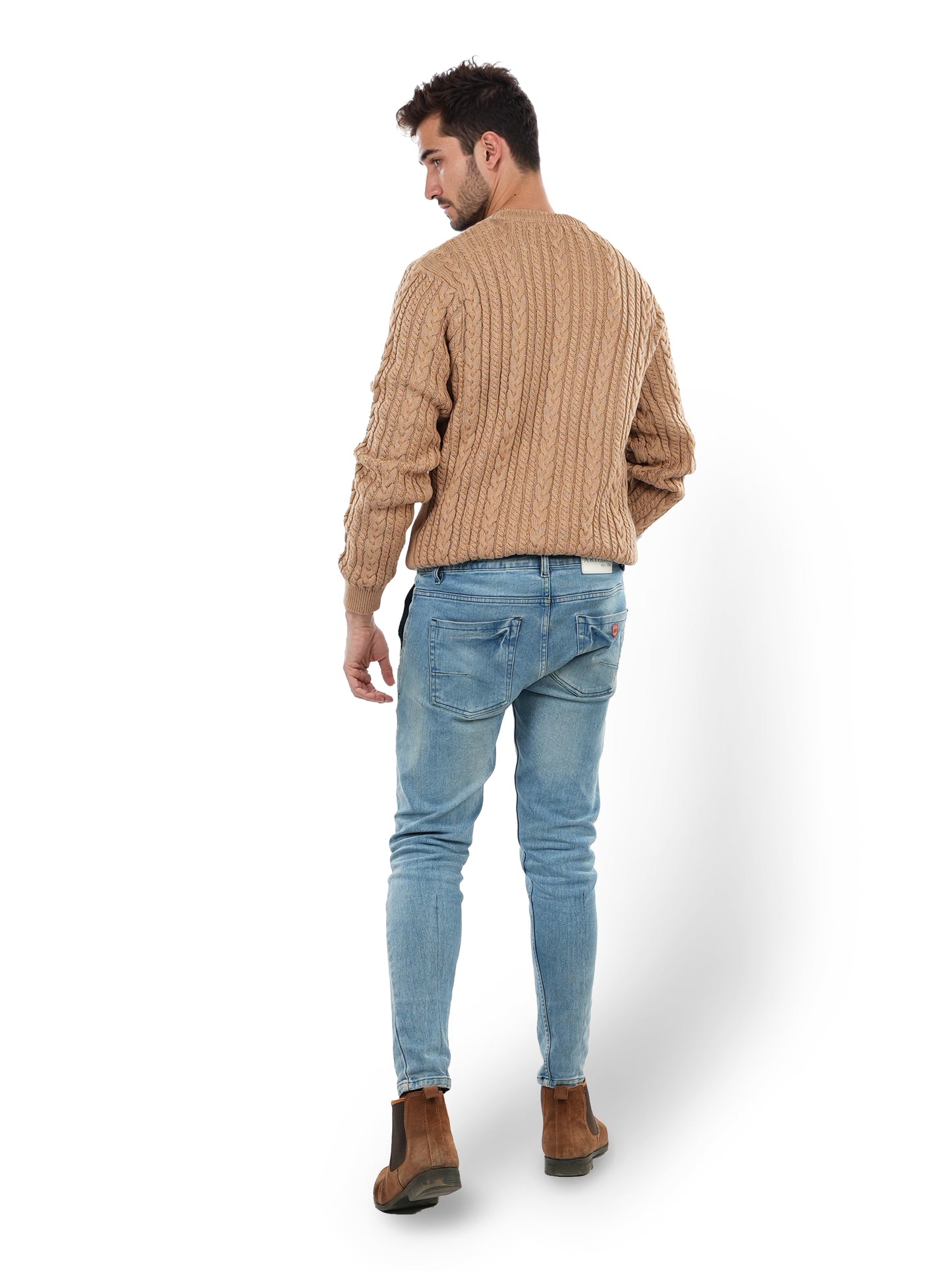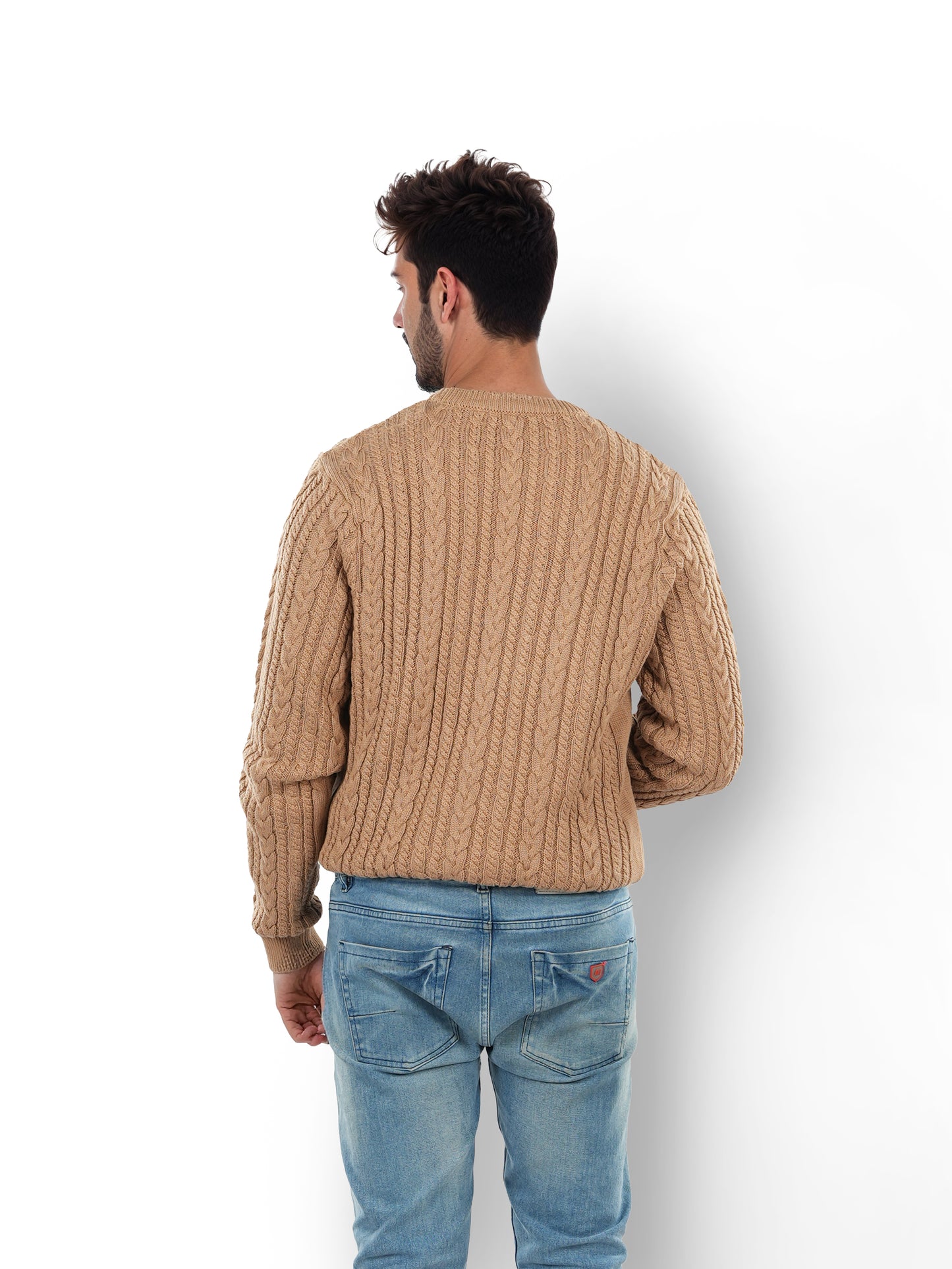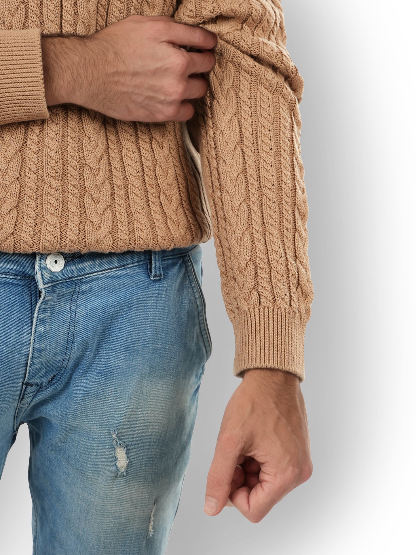 Celio* Solid Regular Fit Cotton Beige Sweater