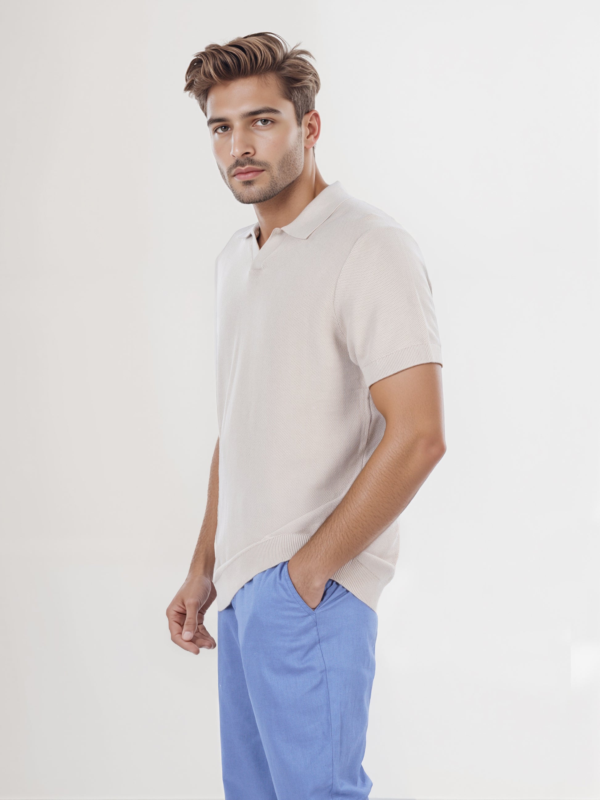 Elevate your casual wardrobe with the Celio Men Beige Polo T-shirt. Crafted from soft cotton, this regular fit tee features short sleeves, making it perfect for everyday wear. Disclaimer: All other items in the image are only for display purposes and will not be a part of the delivery content. Product colour may slightly vary due to photographic lighting sources. Country of Origin - India.
