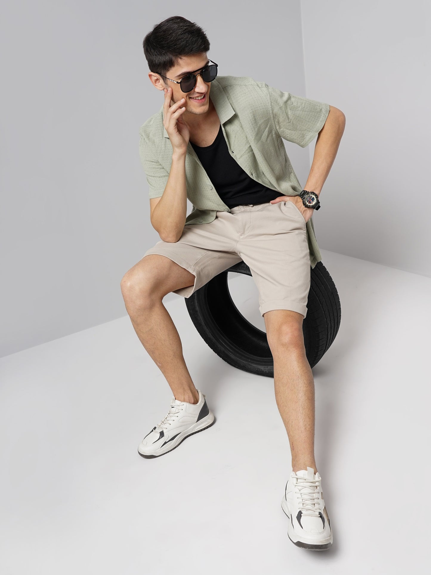 Discover the perfect blend of comfort and style with Celio's Men's Beige Cotton Cargo Shorts. Ideal for casual occasions, these loose-fit shorts are a summer wardrobe essential. Disclaimer: All other items in the image are only for display purposes and will not be a part of the delivery content. Product colour may slightly vary due to photographic lighting sources. Country of Origin - India.