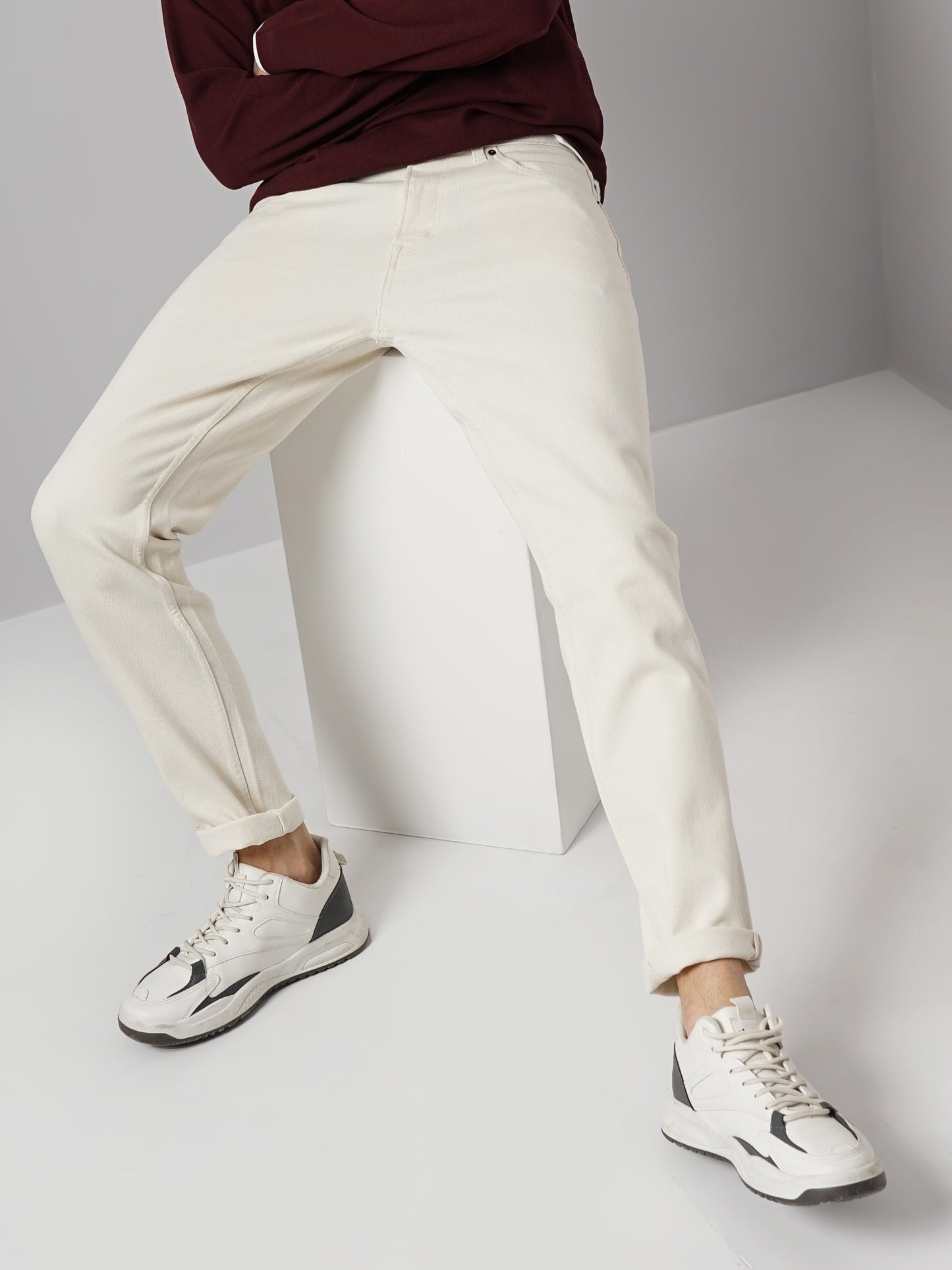 Elevate your casual wear with Celio's men solid slim fit denim Jean in beige. Crafted from comfortable cotton, these Jean combine style and comfort effortlessly. Disclaimer: All other items in the image are only for display purposes and will not be a part of the delivery content. Product colour may slightly vary due to photographic lighting sources. Country of Origin - India.