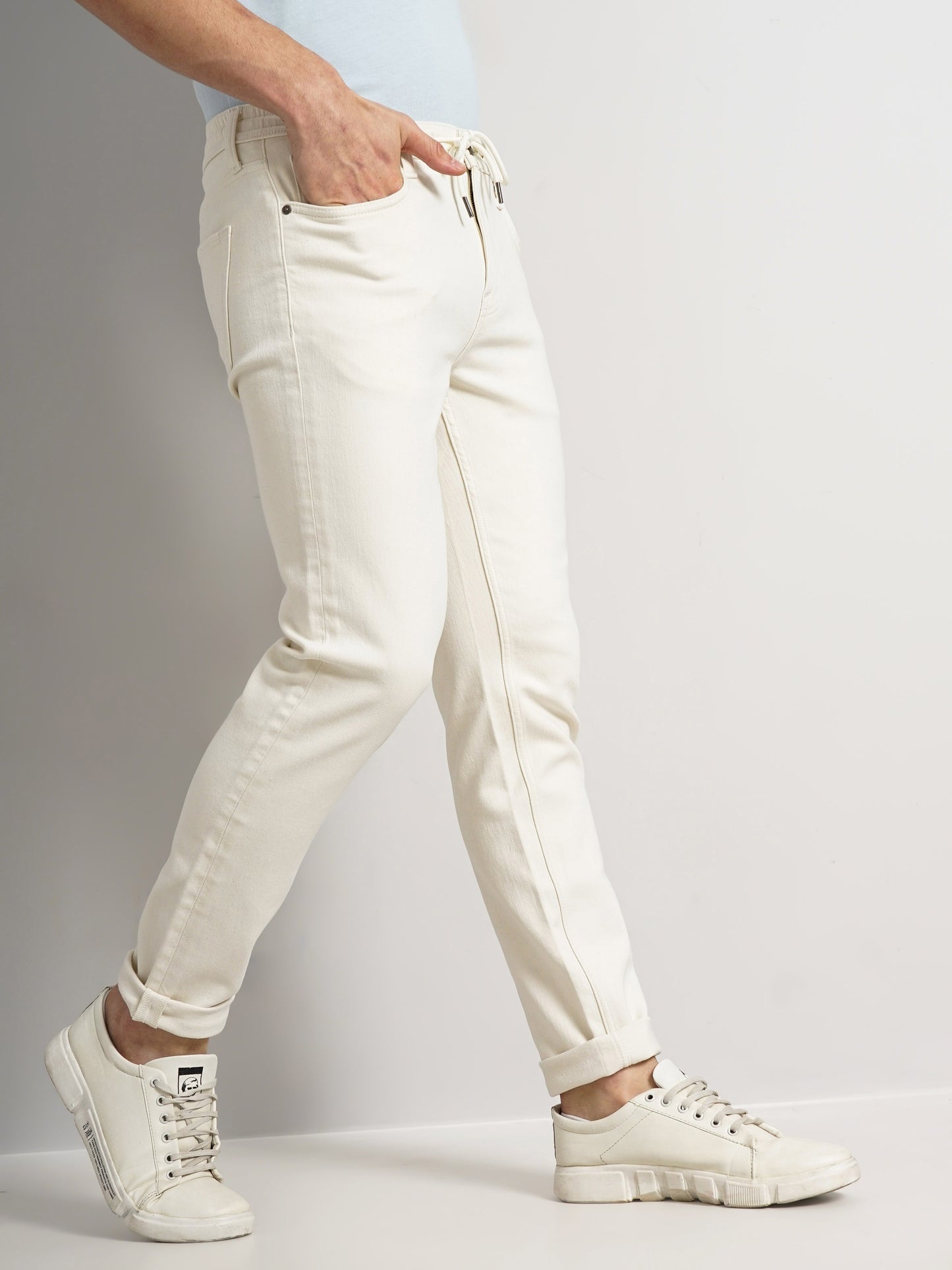 Elevate your casual style with the Celio Men Slim Fit Cotton Denim Jogger in Beige. Crafted from soft cotton, these joggers offer comfort and a modern look for men. Disclaimer: All other items in the image are only for display purposes and will not be a part of the delivery content. Product colour may slightly vary due to photographic lighting sources. Country of Origin - India.