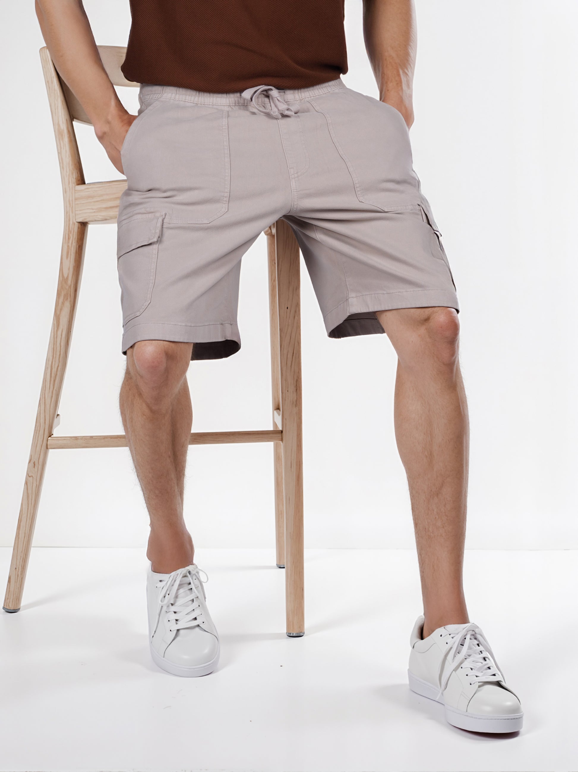 Shop Celio's beige solid straight fit cargo shorts for men made from comfortable cotton, perfect for casual outings. Elevate your summer wardrobe with these stylish jogger shorts. Disclaimer: All other items in the image are only for display purposes and will not be a part of the delivery content. Product colour may slightly vary due to photographic lighting sources. Country of Origin - India.