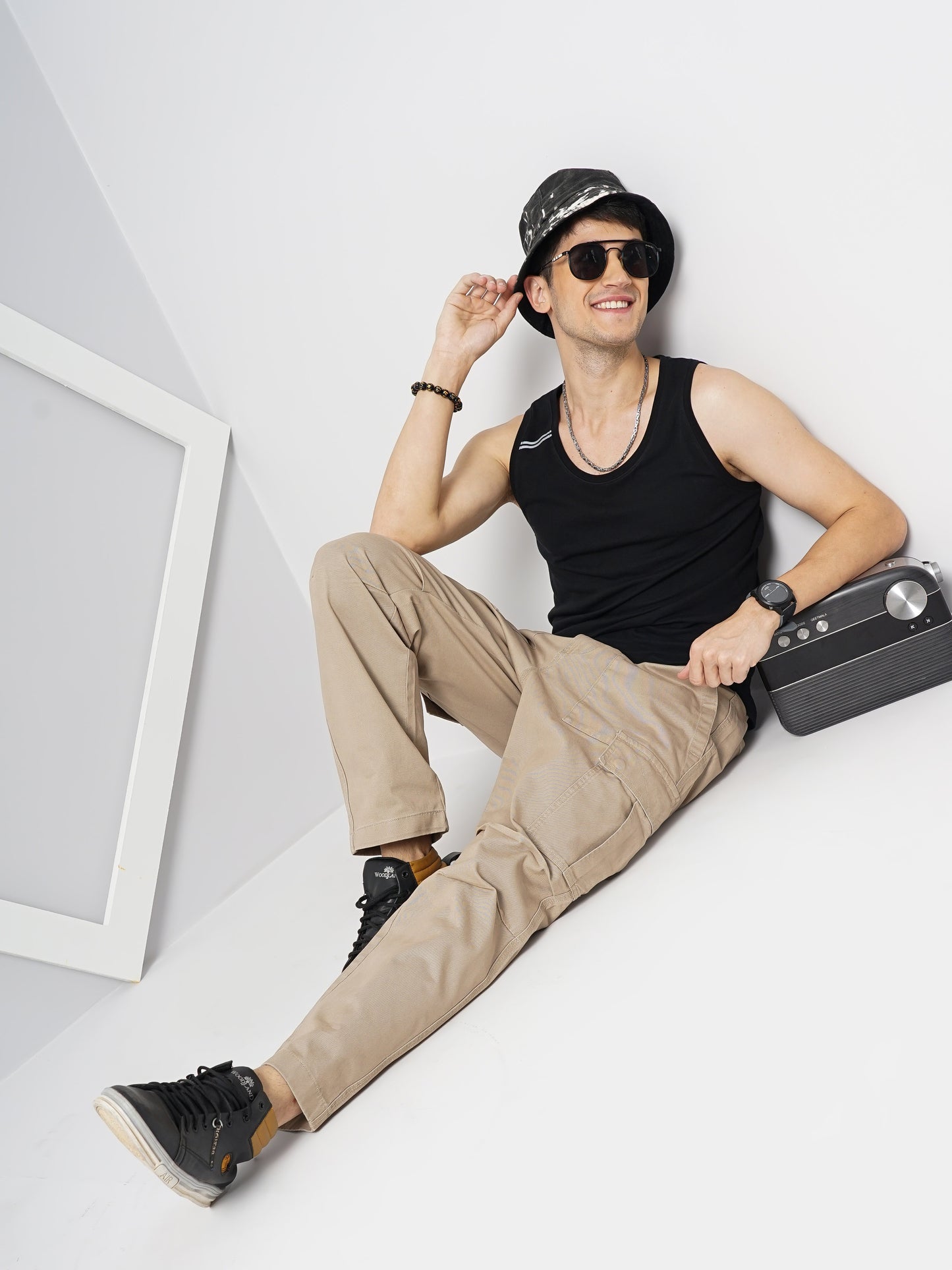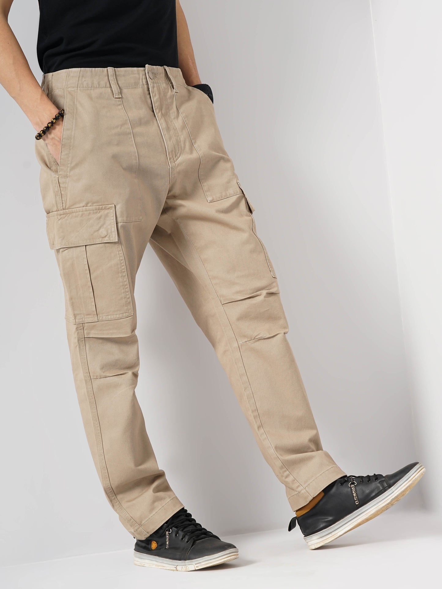 Elevate your casual style with Celio's solid beige cargo Trouser. Crafted from comfortable cotton, these straight fit Trouser are perfect for men seeking functionality and fashion. Disclaimer: All other items in the image are only for display purposes and will not be a part of the delivery content. Product colour may slightly vary due to photographic lighting sources. Country of Origin - India.p> GOANDER