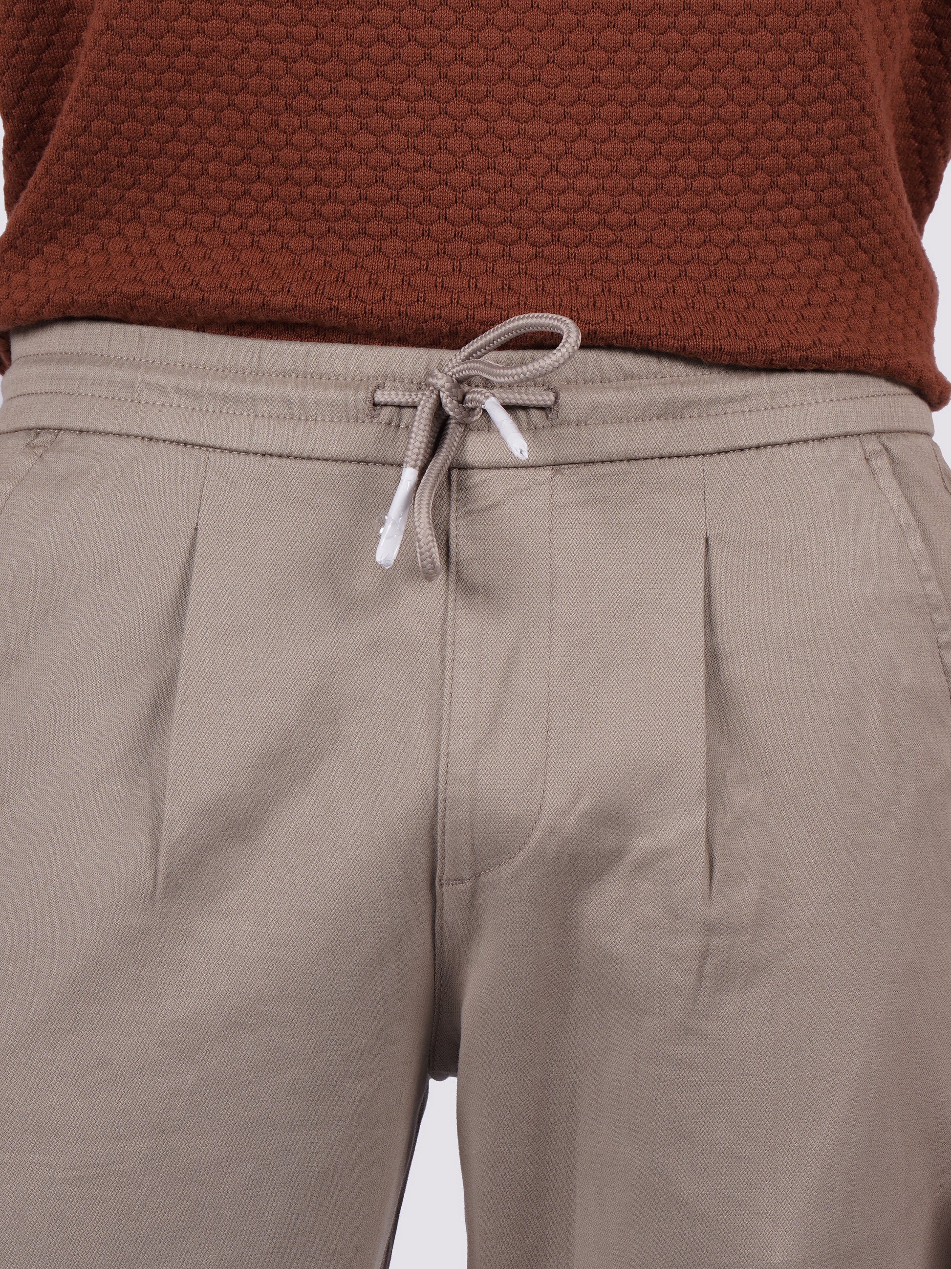Celio Men Beige Solid Jogger Fit Cotton-Tencel-Blend Trousers