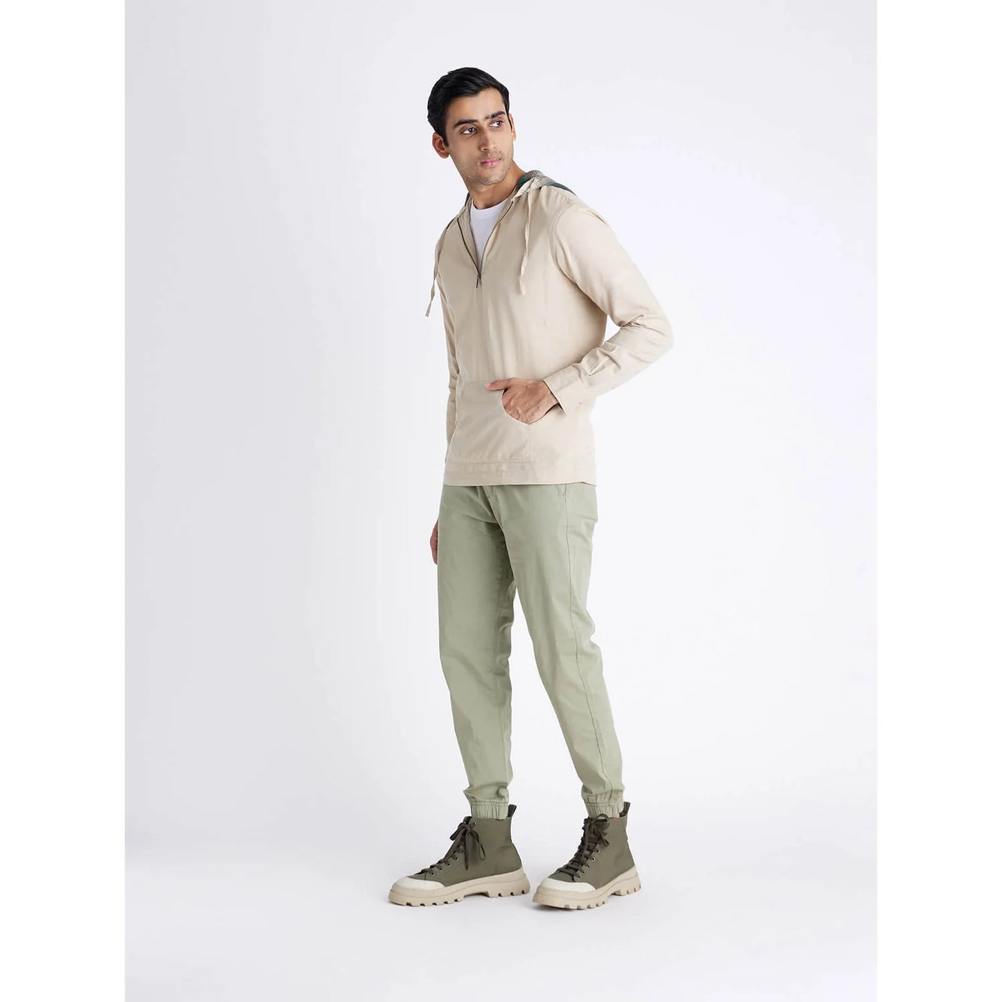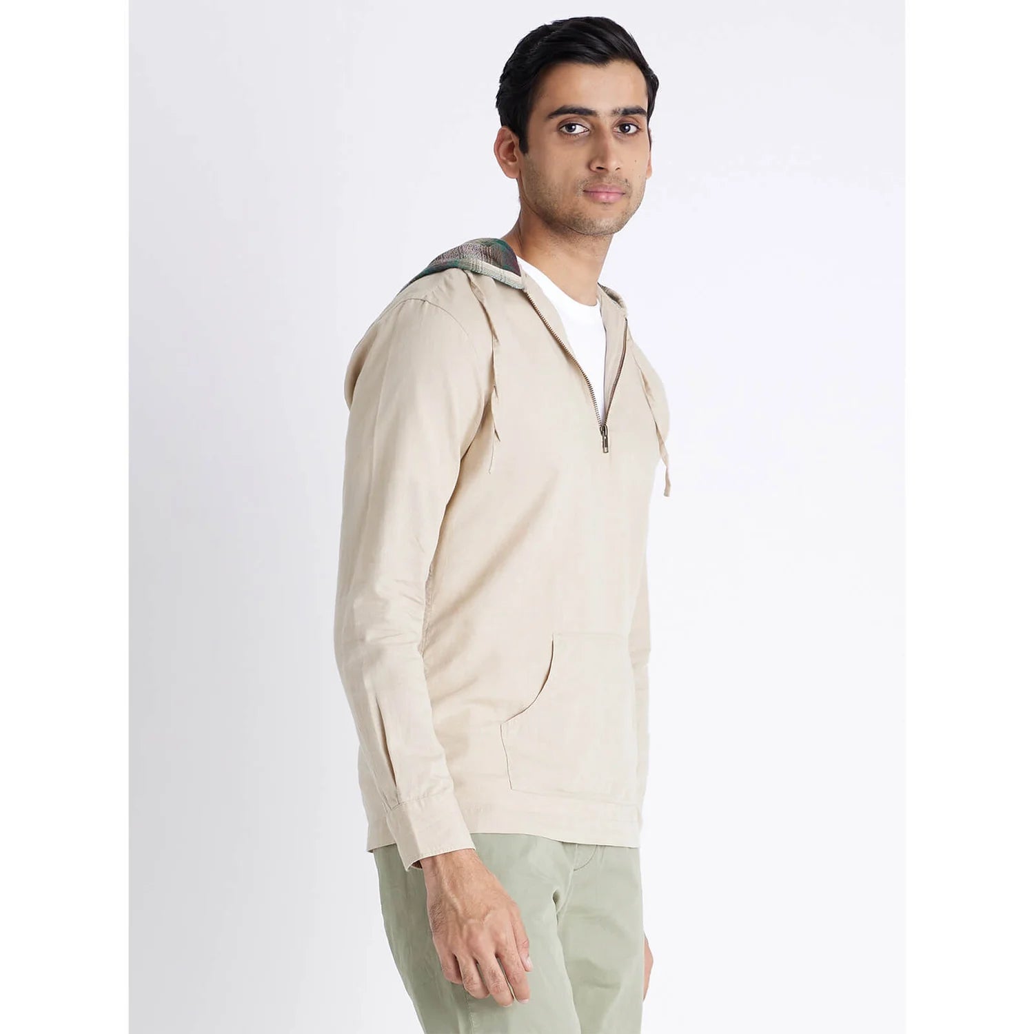 Celio* Solid Regular Fit Linen-Blend Beige Shirt