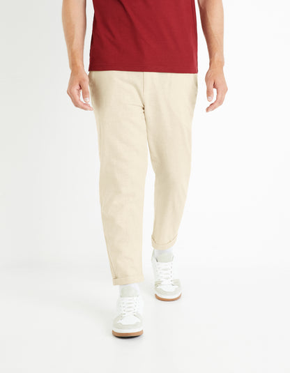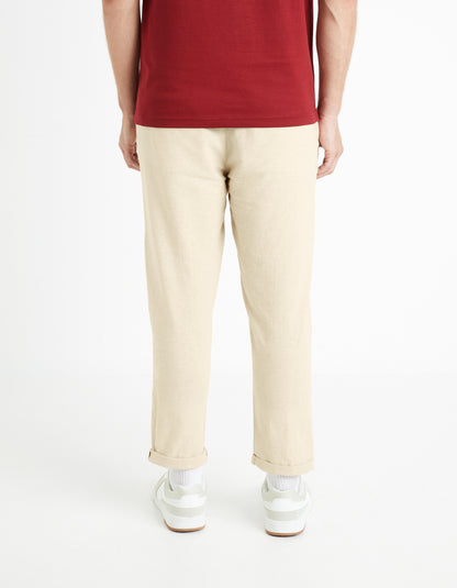 Celio* Linen-Blend Straight Fit Beige Trouser