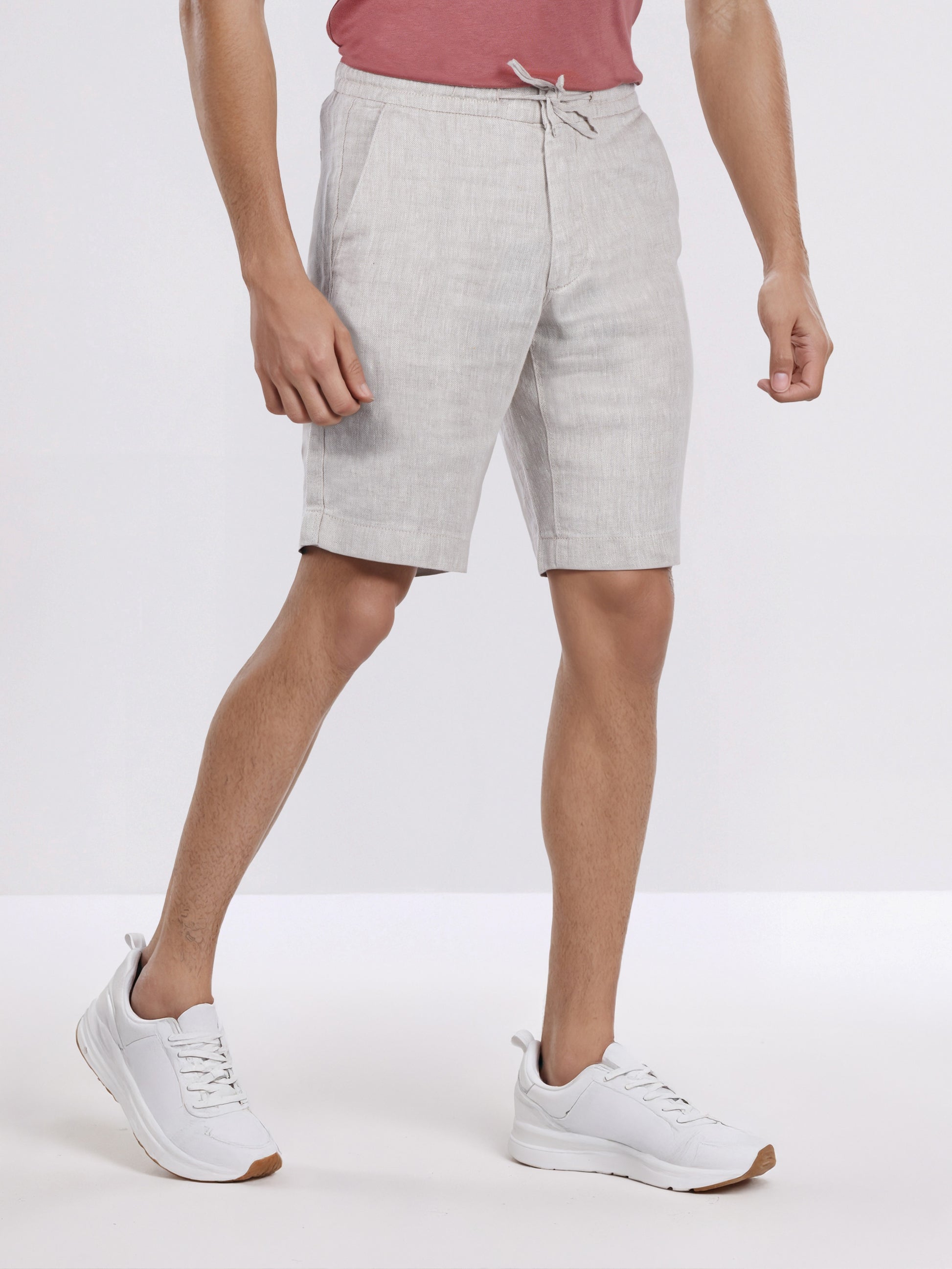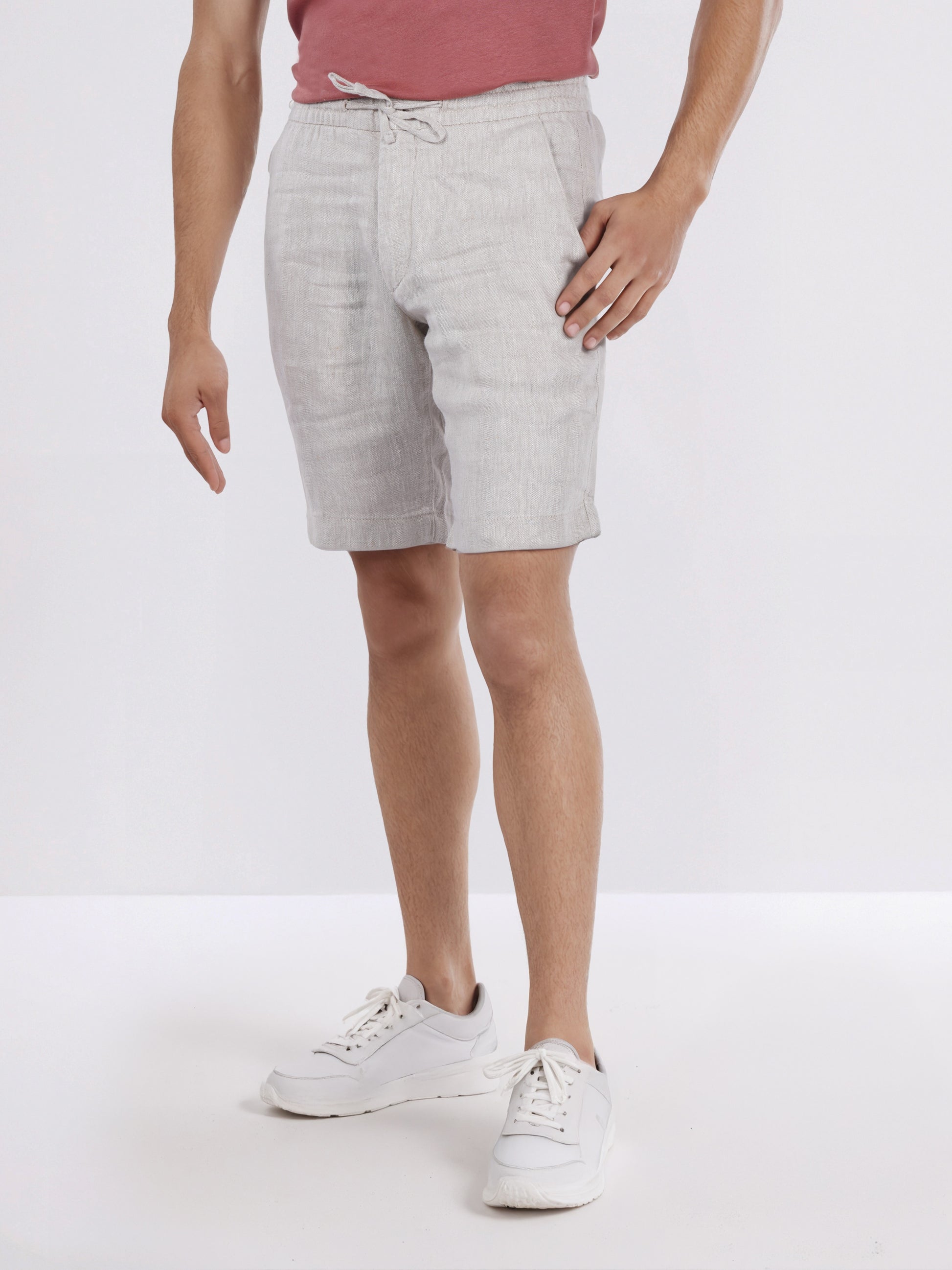Elevate your casual look with Celio's beige solid Bermuda fit linen shorts for men. Crafted from breathable linen, these shorts offer comfort and style for everyday wear. Disclaimer: All other items in the image are only for display purposes and will not be a part of the delivery content. Product colour may slightly vary due to photographic lighting sources. Country of Origin - India.